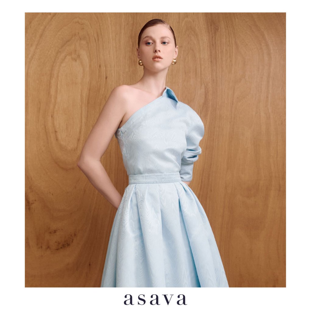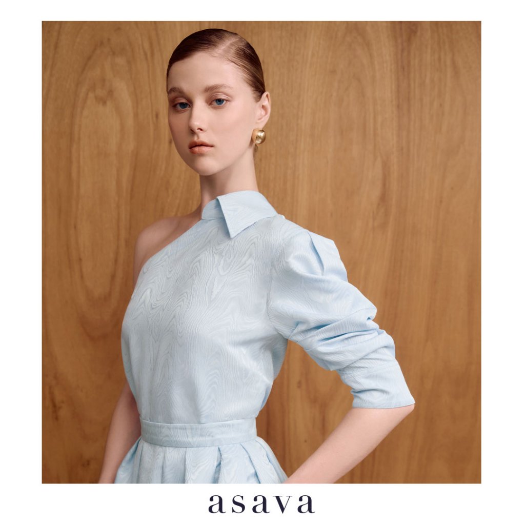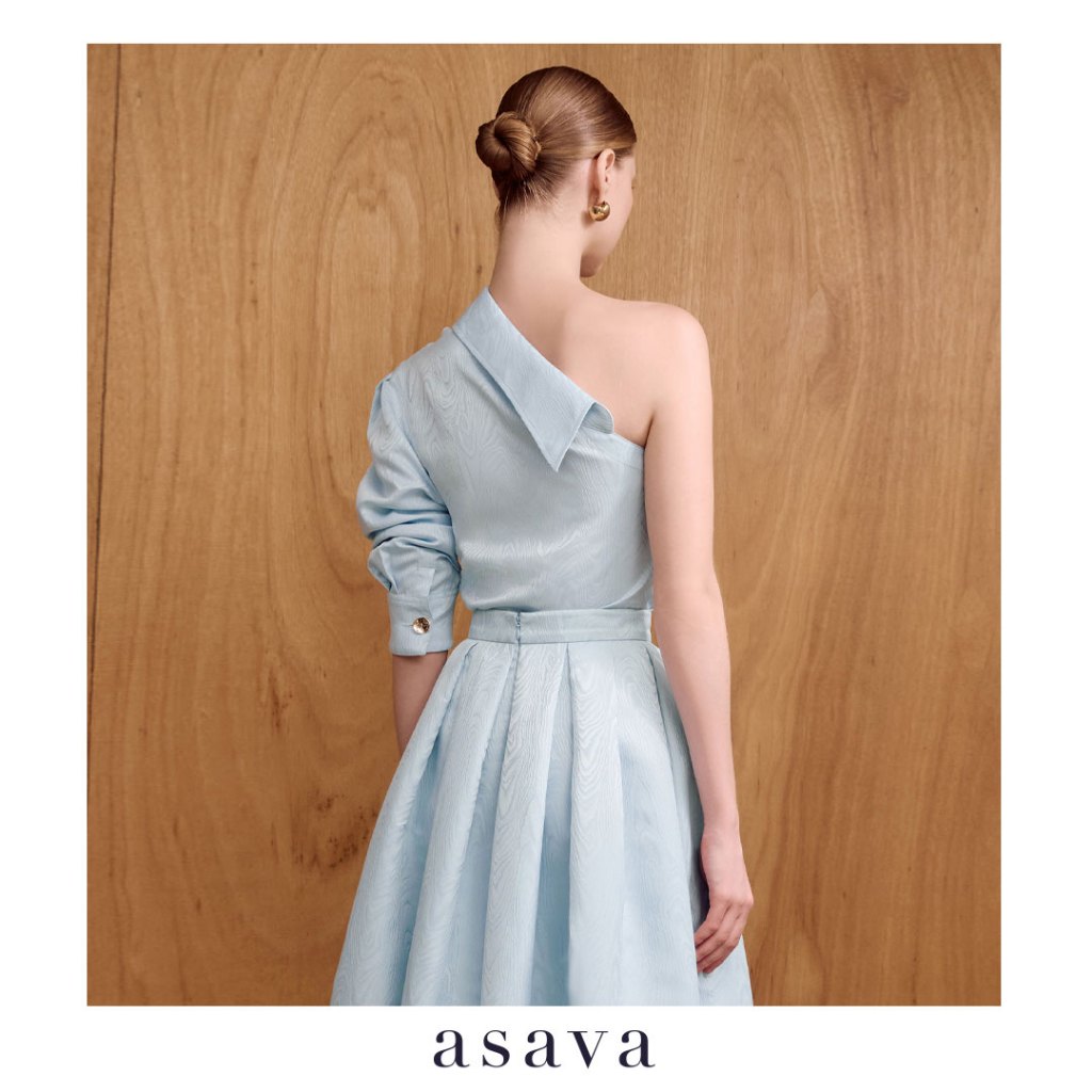 [asava ss25] Oriane One-shoulder Blouse เสื้อผู้หญิง ไหล่เดียว แขนยาว แต่งดีเทลปกเสื้อ ซิปและตะขอข้าง ชายเสื้อโค้ง
