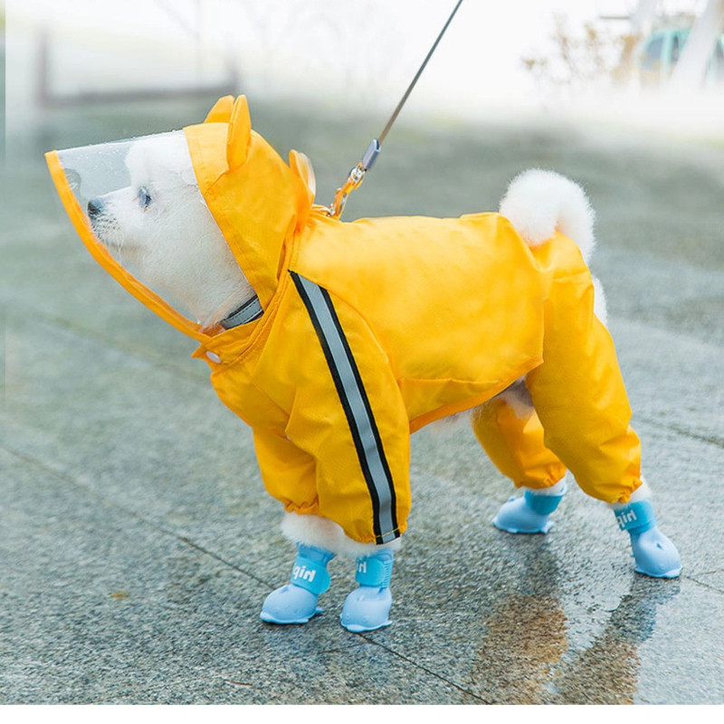 การ์ตูนกันน้ําสุนัขเสื้อกันฝนครอบคลุมเต็มรูปแบบเสื้อปอนโชสัตว์เลี้ยงสําหรับสุนัขขนาดกลางขนาดเล็กเท็ดดี้ฤดูร้อนกลางแจ้ง