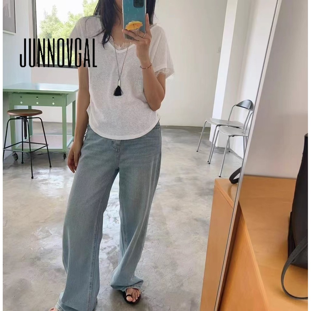 เสื้อยืดลูกไม้แขนสั้นสำหรับผู้หญิงในปี คอลเล็กชั่นใหม่ล่าสุดในสไตล์ Y2K