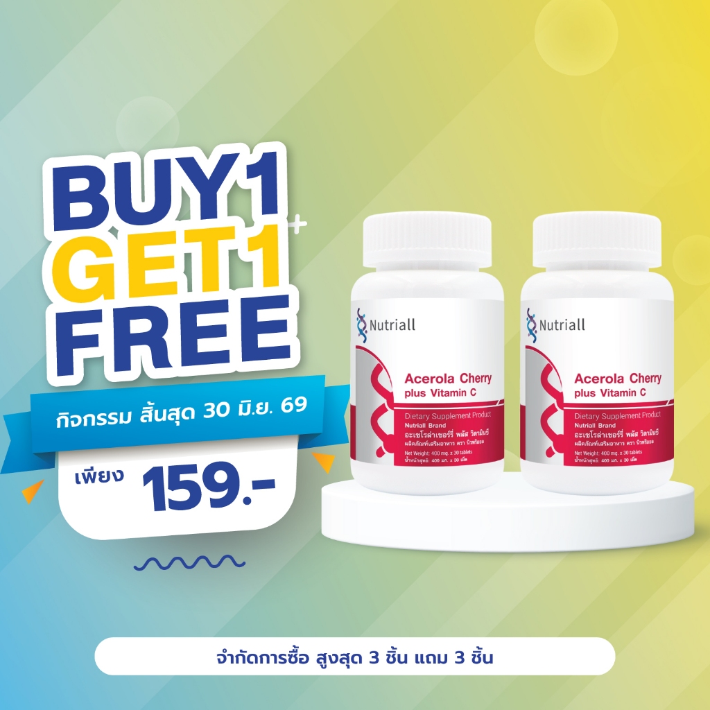 [ซื้อ 1 แถม 1 ] อะเซโรล่าเชอร์รี่ พลัส วิตามินซี นิวทริออล Acerola Cherry plus Vitamin C Nutriall อะเซโรล่า เชอร์รี่