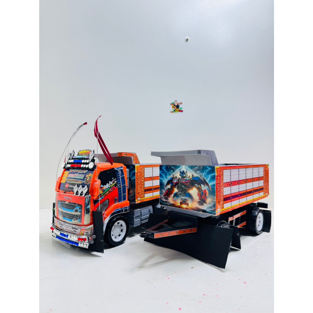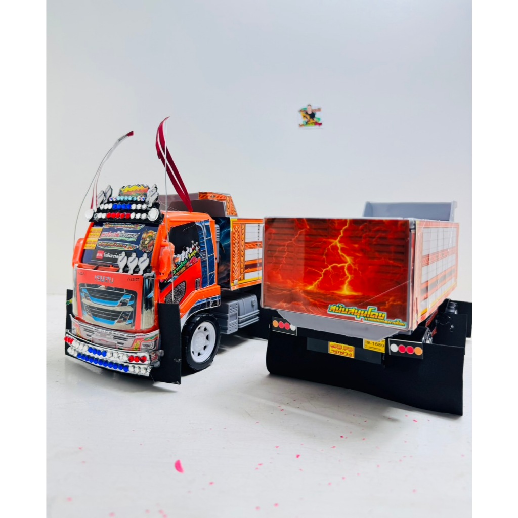 รถดั้มพ่วงแต่งซิ่งจัดเต็ม1:24เพิ่มราวไฟให้หลายชั้น ติดมิชลิน ติดบังฝุ่นรอบคันพร้อมพ่วงมีเสาธงสุดเท่ห์รถดั้มพ่วงเด็กเล่น