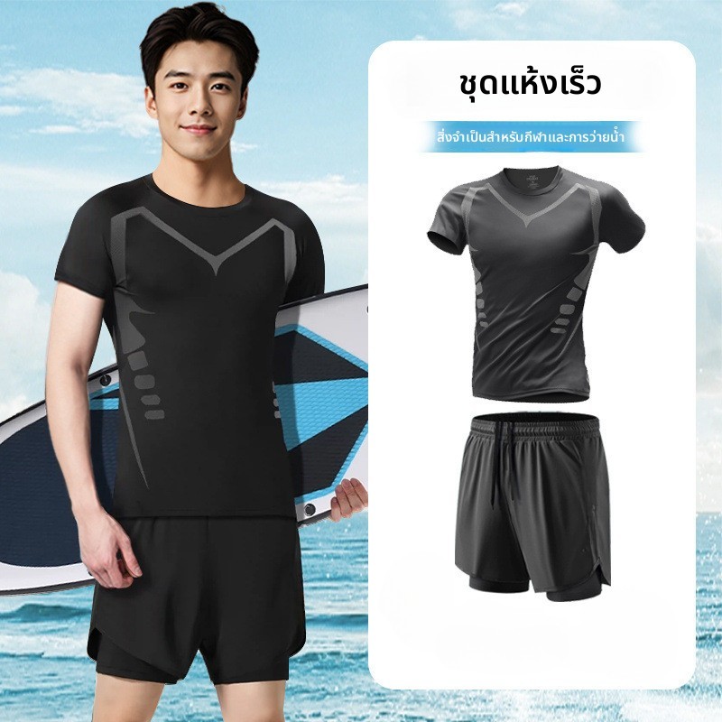 ชุดว่ายน้ำแห้งเร็วสำหรับผู้ชาย Anti Embarrassment พร้อมการปกป้องจากแสงแดดและระบายอากาศได้ดี เหมาะสำหรับยิมและวิ่ง