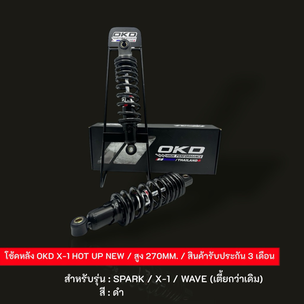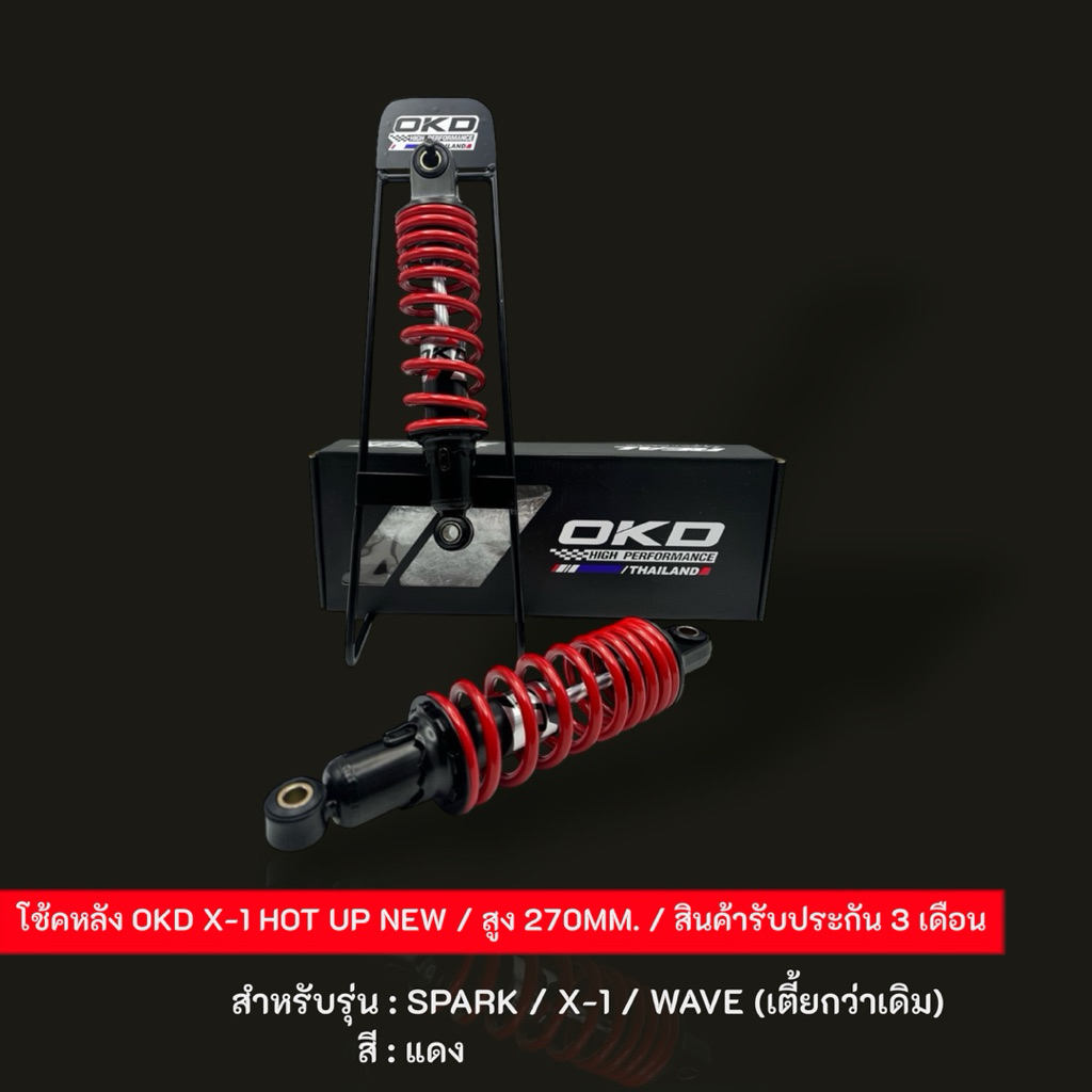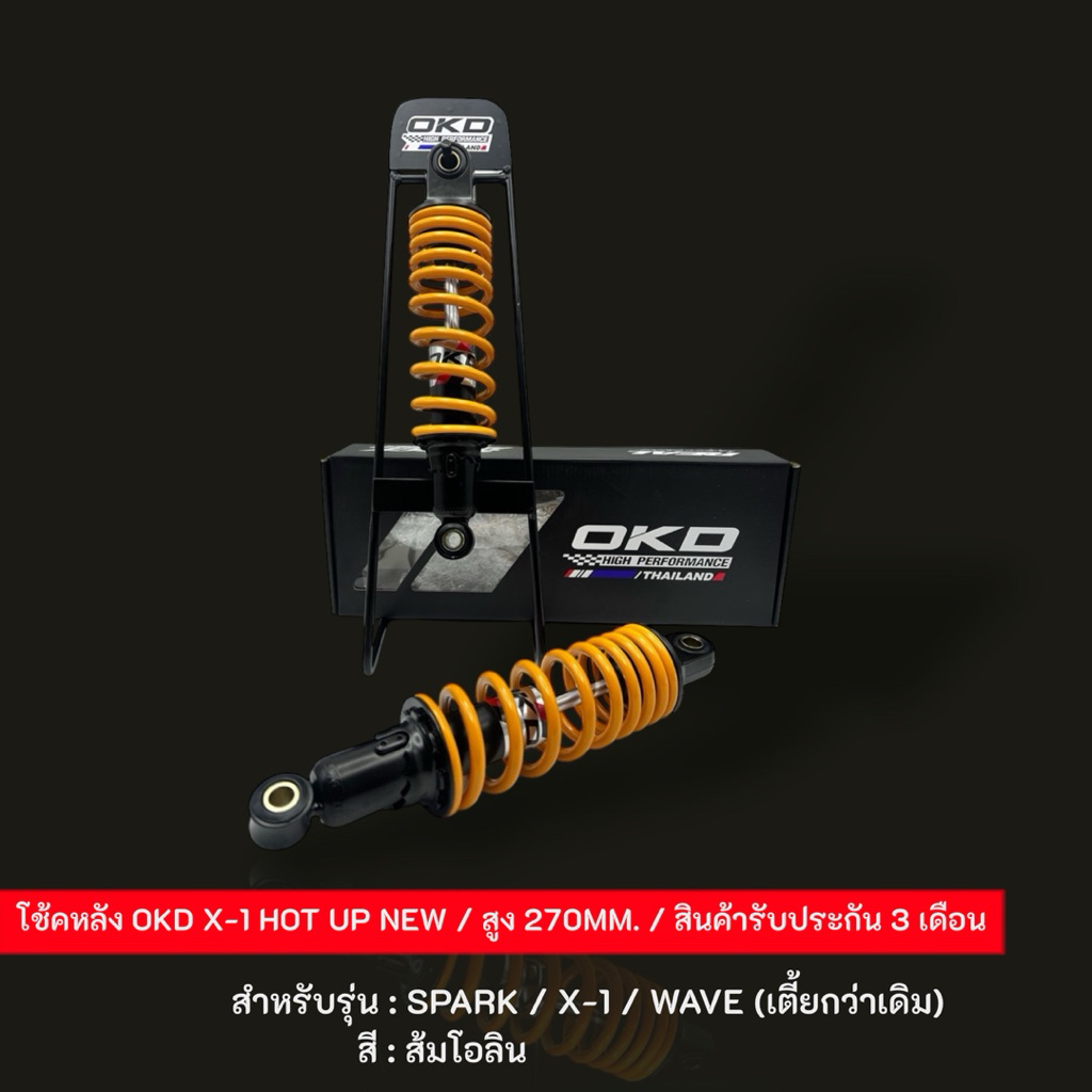 โช้คOKD X-1 HOT UP NEW สูง 270MM. สำหรับรุ่น: SPARK / X-1 / WAVE (เตี้ยกว่าเดิม)