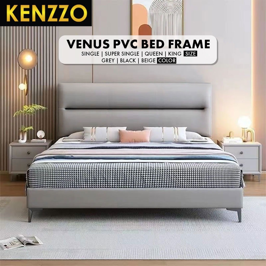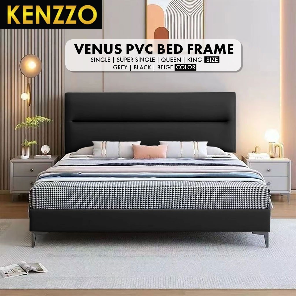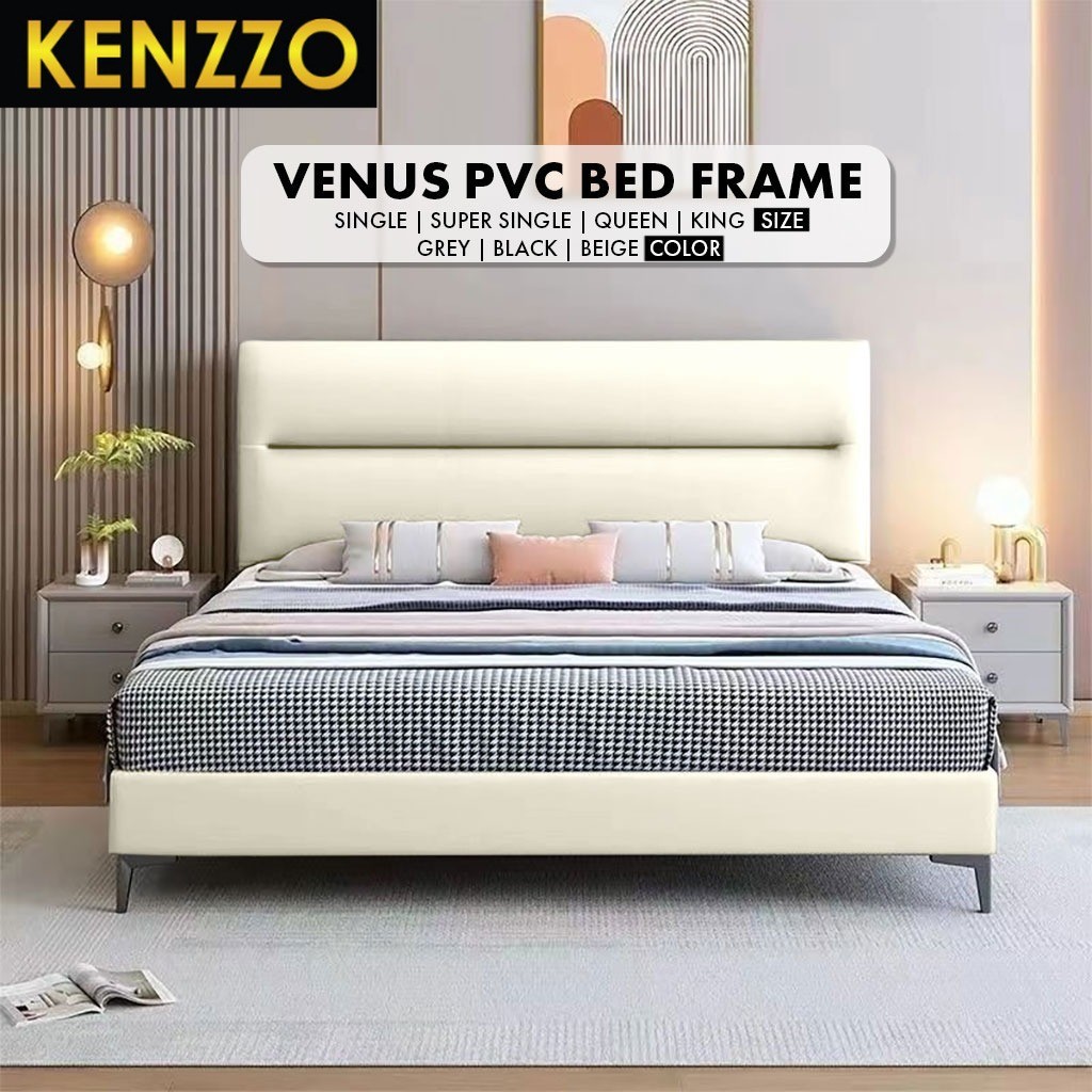 พร้อมส่ง Kenzzo:เตียงหุ้มหนัง PVC พร้อมหัว ขนาด 3 ฟุต 3.5 ฟุต 5 ฟุต 6 ฟุต โครงไม้เนื้อแข็งอย่างดี Venus Bed Frame