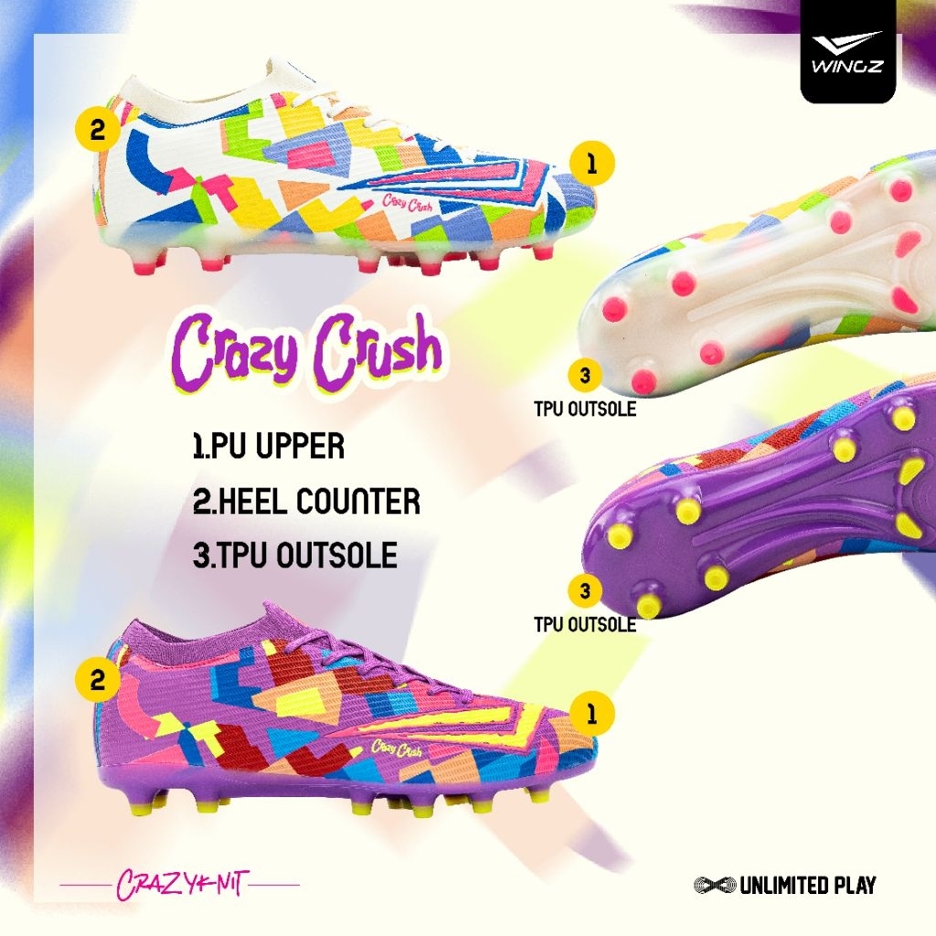(WINGZลิขสิทธิ์💯)ไซส์ 30-45 รองเท้าฟุตบอล/สตั๊ด Crazy Crush ไซส์เด็ก-ผู้ใหญ่