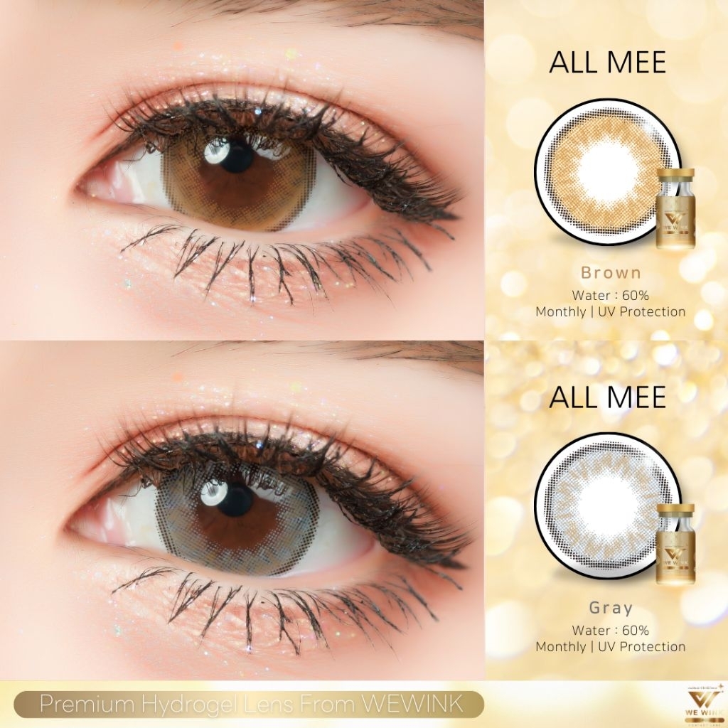 คอนแทคเลนส์ มี อย.ไทย รุ่น All mee ไฮโดรเจล Hydrogel Gray/Brown สีเทา/ตาล มีค่าสายตา (0.00)-(-10.00) รายเดือน