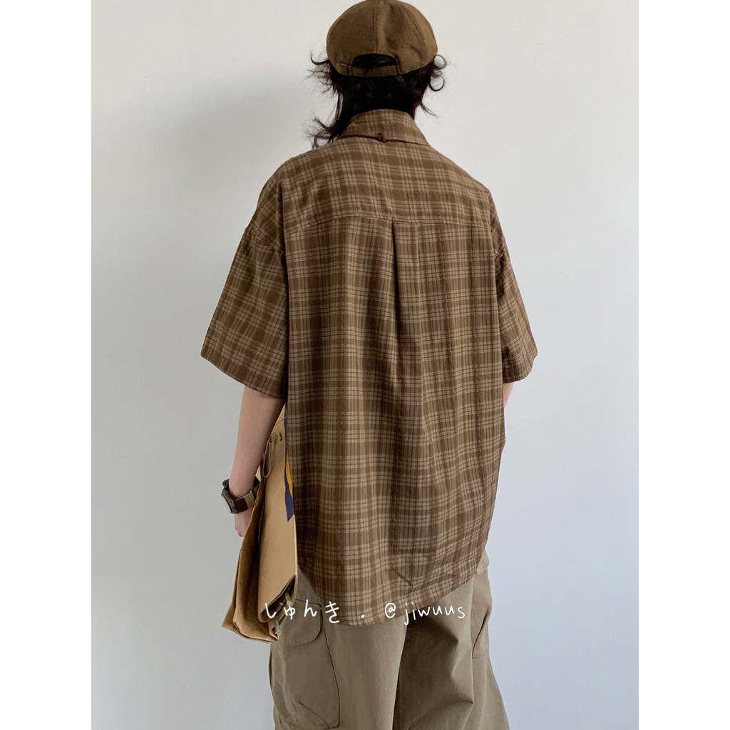 Suikone เสื้อเชิ้ตแขนสั้นลายสก๊อตย้อนยุคญี่ปุ่นฤดูร้อนผู้ชายและผู้หญิงเสื้อเชิ้ตหลวม