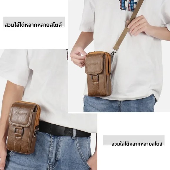 แฟชั่นกระเป๋าสตางค์ผู้ชาย 6.5 นิ้ว - 7.2 นิ้ว กระเป๋าสตางค์หนัง เคสโทรศัพท์แบบคาดเข็มขัด กระเป๋าคาดเอวสำหรับเล่นกีฬา