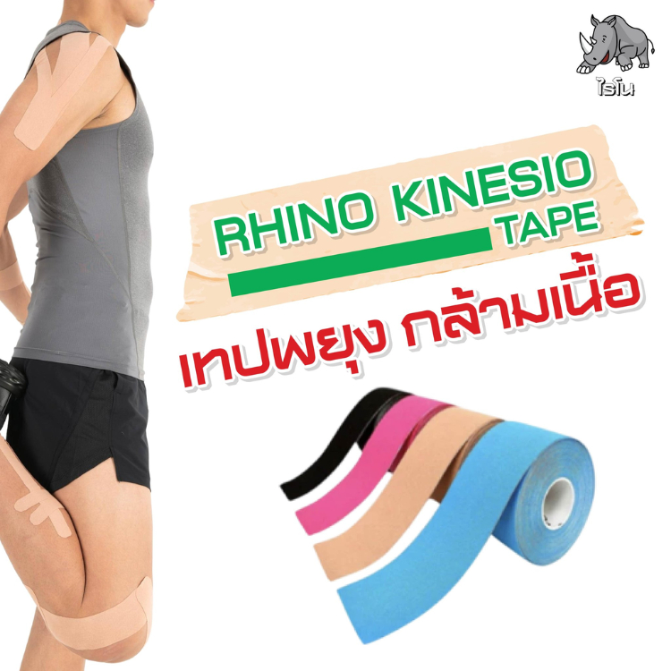 Rhino Kinesio Tape ไรโน คิเนสิโอเทป เทปพยุงกล้ามเนื้อ สำหรับนักกีฬา มีทั้งหมด 6 สี ขนาด 5 ซม.x 5 ม.
