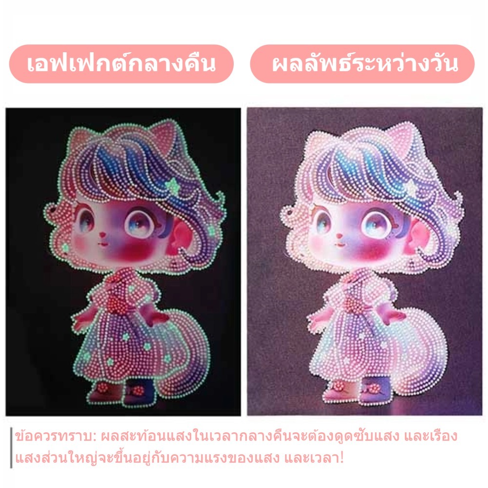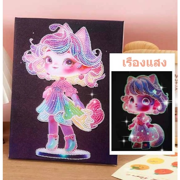 DIY เรืองแสง ภาพครอสติสคริสตัล 💎23x30cm 5D Diamond Painting ลายการ์ตูน แบบกรอบรูป