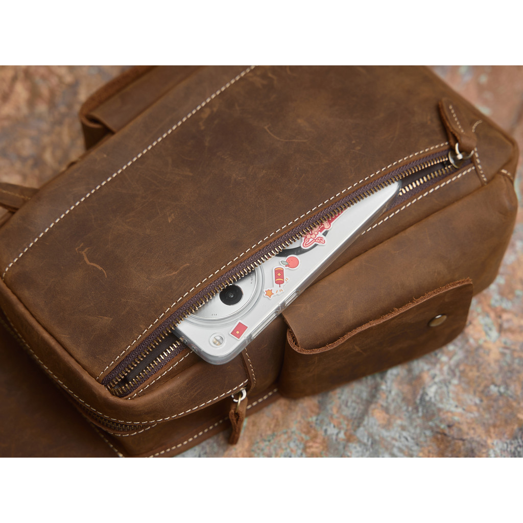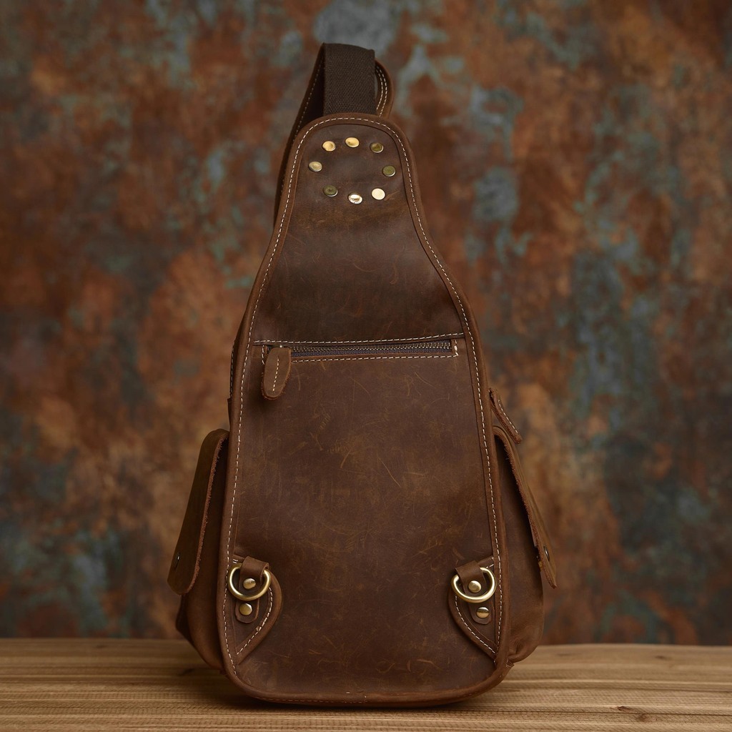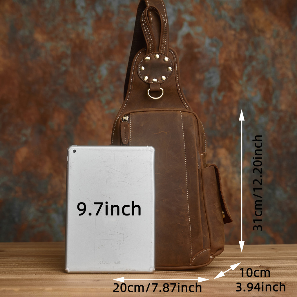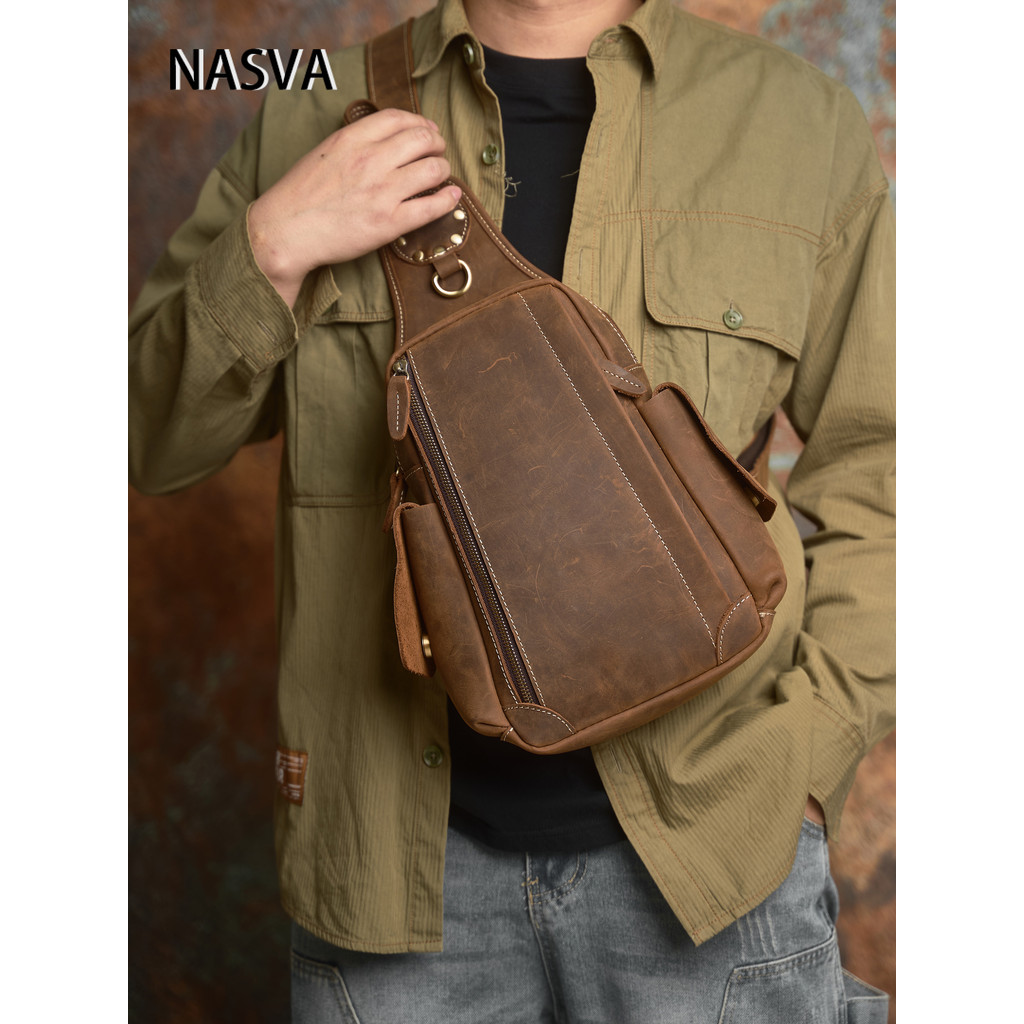 นาสวา หนังแท้กระเป๋าหน้าอกผู้ชายย้อนยุคกระเป๋า ผู้สื่อสาร สบายๆความจุขนาดใหญ่หลายช่องกระเป๋าสะพายหนังวัวชั้นหนึ่ง