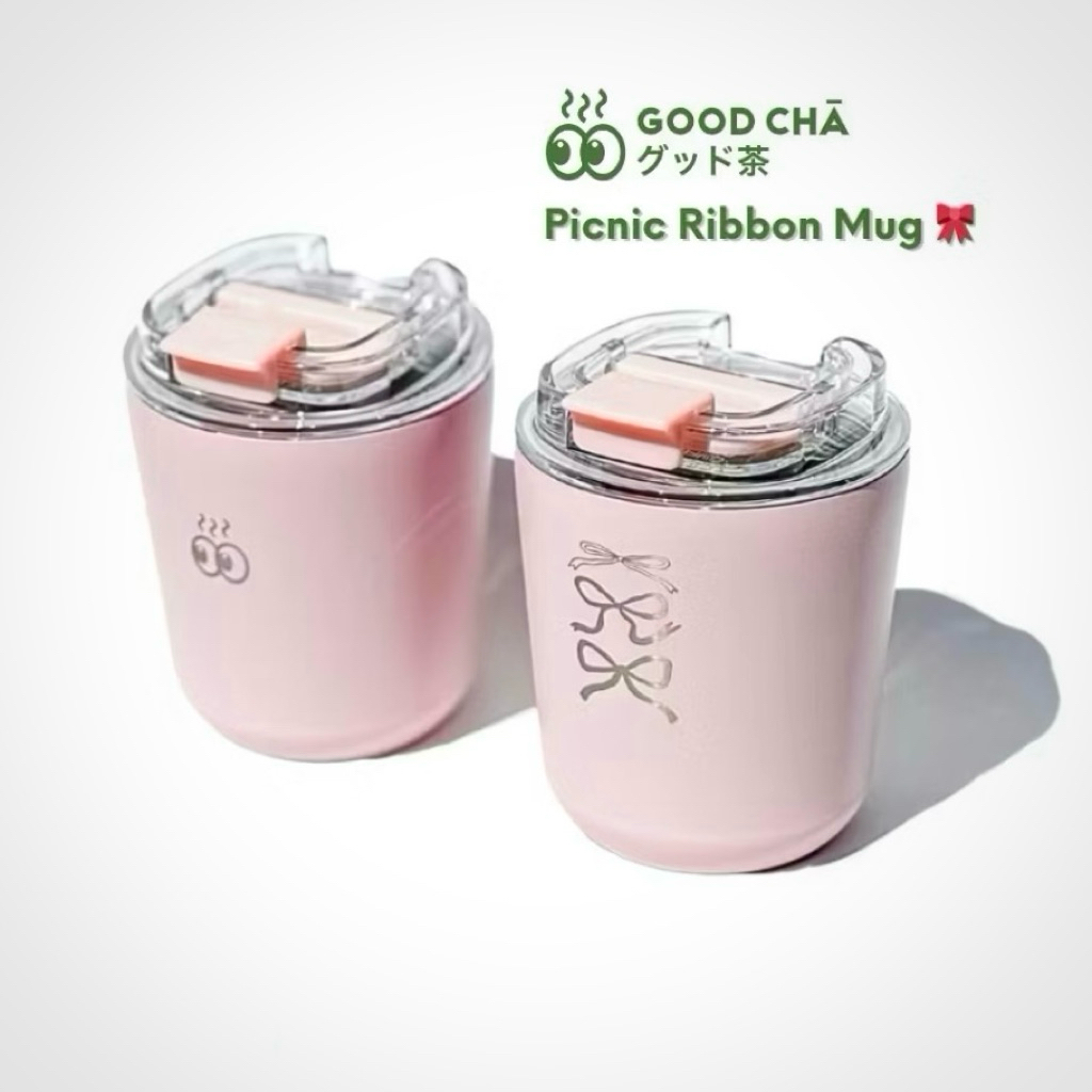 Goodcha 🩷🍵 👀 Picnic ribbon mug แก้วเก็บความเย็น, ถ้วยชงชา Goodcha Chawan, แก้ว babytritan, แก้ว I only drink good matcha