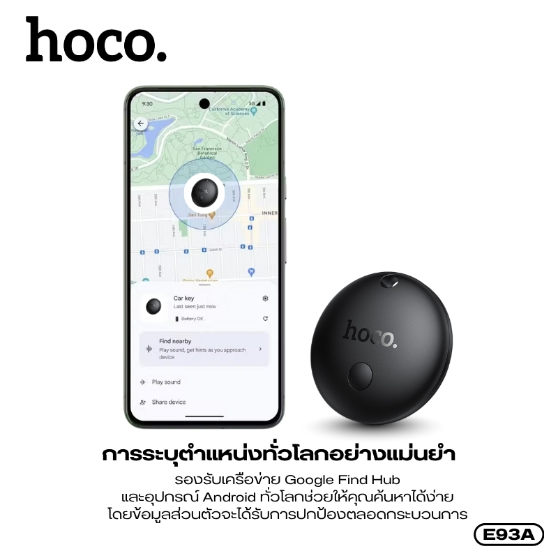 เครื่องติดตามขนาดเล็ก GPS Tag HOCO E93A เหมาะสำหรับ Android กระทัดรัด ทนทาน อายุการใช้งานแบตเตอรี่ 6-8 เดือน