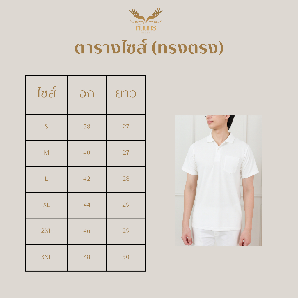 Punnakorn เสื้อโปโลสีขาว ผ้านุ่ม ใส่ระบายอากาศ ไม่ยับ ไม่ต้องรีด สินค้าพร้อมส่ง(ส่งฟรี) คอปกโปโล
