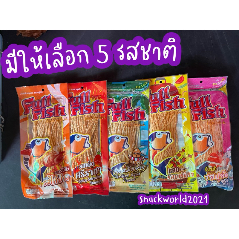 ปลาเส้นปรุงรส ตราฟูฟิช Full Fish ขนาด 70 กรัม รส BBQ, ปูอัด, หมึกย่าง, ไก่ย่าง, เผ็ดศรีราชา