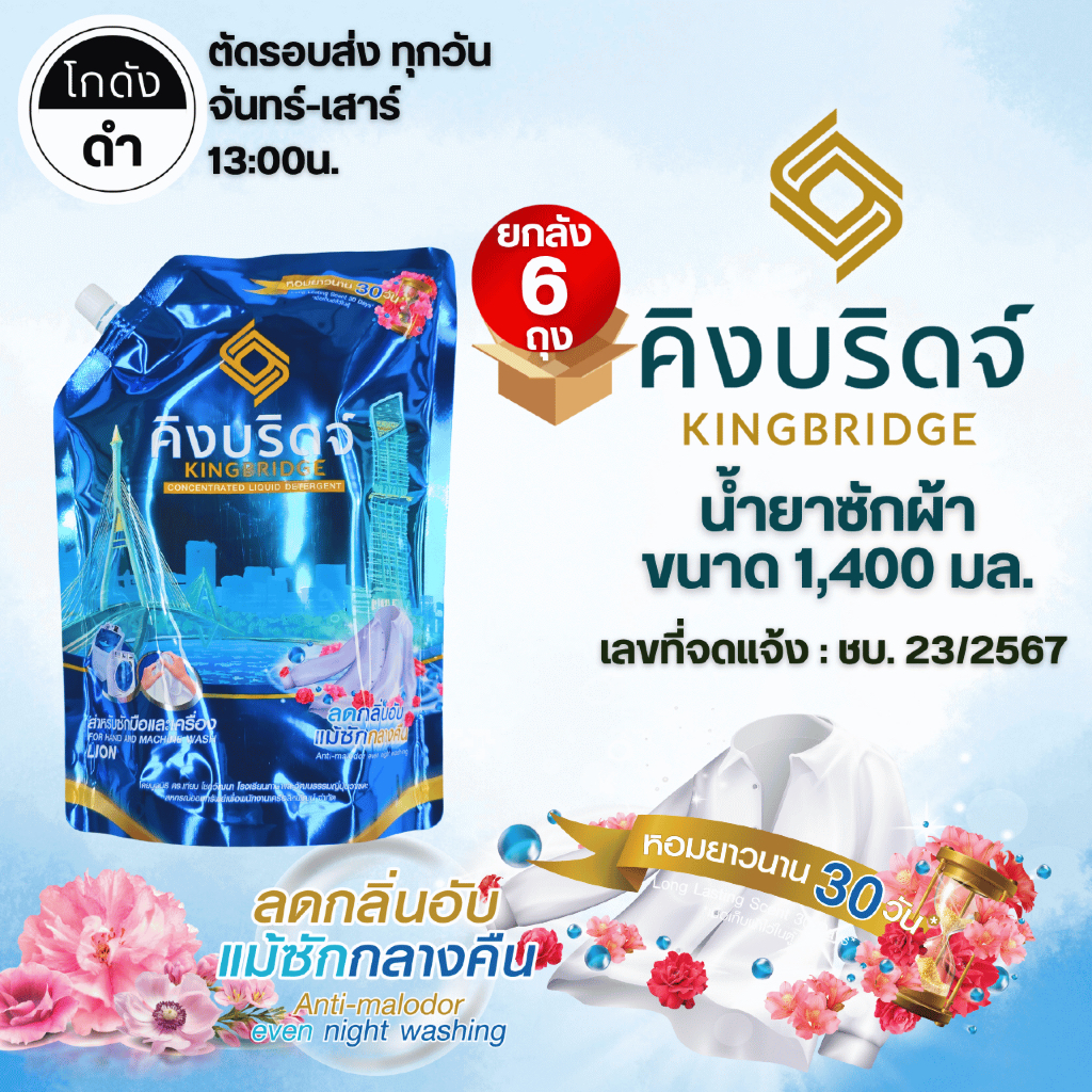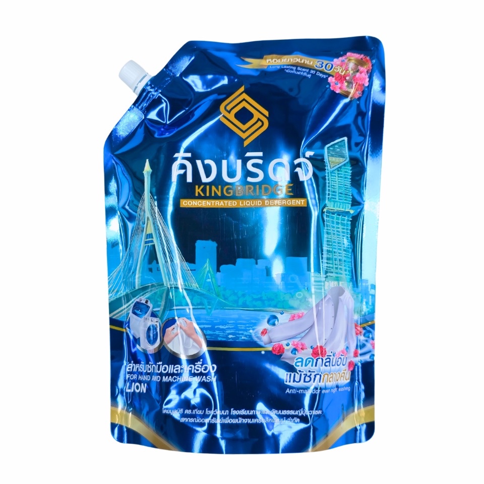 King Bridge น้ำยาซักผ้า คิงบริดจ์ 1400มล. x 6ถุง สูตรเข้มข้น ซักเครื่องฝาหน้า ซักเครื่องฝาบน กลิ่นหอมติดผ้า ลดกลิ่นอับ