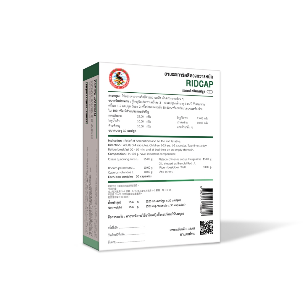 Dragonfish Brand บรรเทาริดสีดวงทวารหนัก ตราปลามังกร (1 กล่อง)