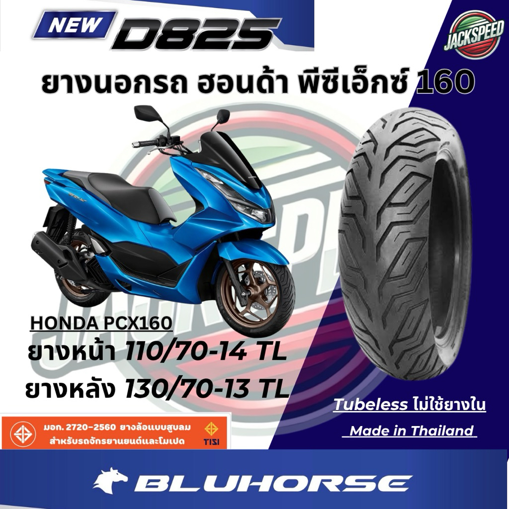 ยางนอกรถ ฮอนด้า พีซีเอ็กซ์ 160 Honda PCX 160(ไม่ใช้ยางใน) ลาย D825 ยางบูลฮอส ยางหน้า 110/70-14 TL ยางหลัง 130/70-13 TL