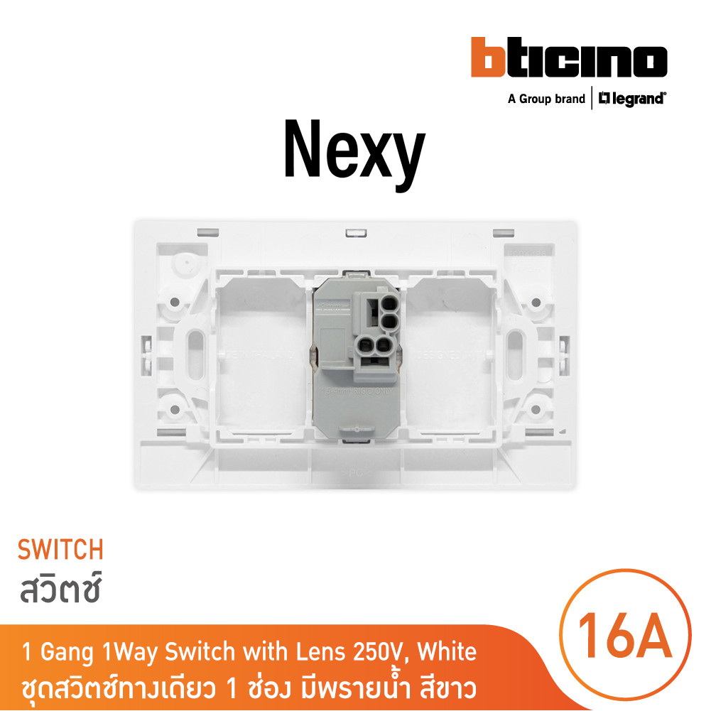 BTicino ชุดสวิตช์ทางเดียว ขนาด 1 ช่อง มีพรายน้ำ สีขาว 1 Way Switch 1 Gang White รุ่น Nexy | BTicino