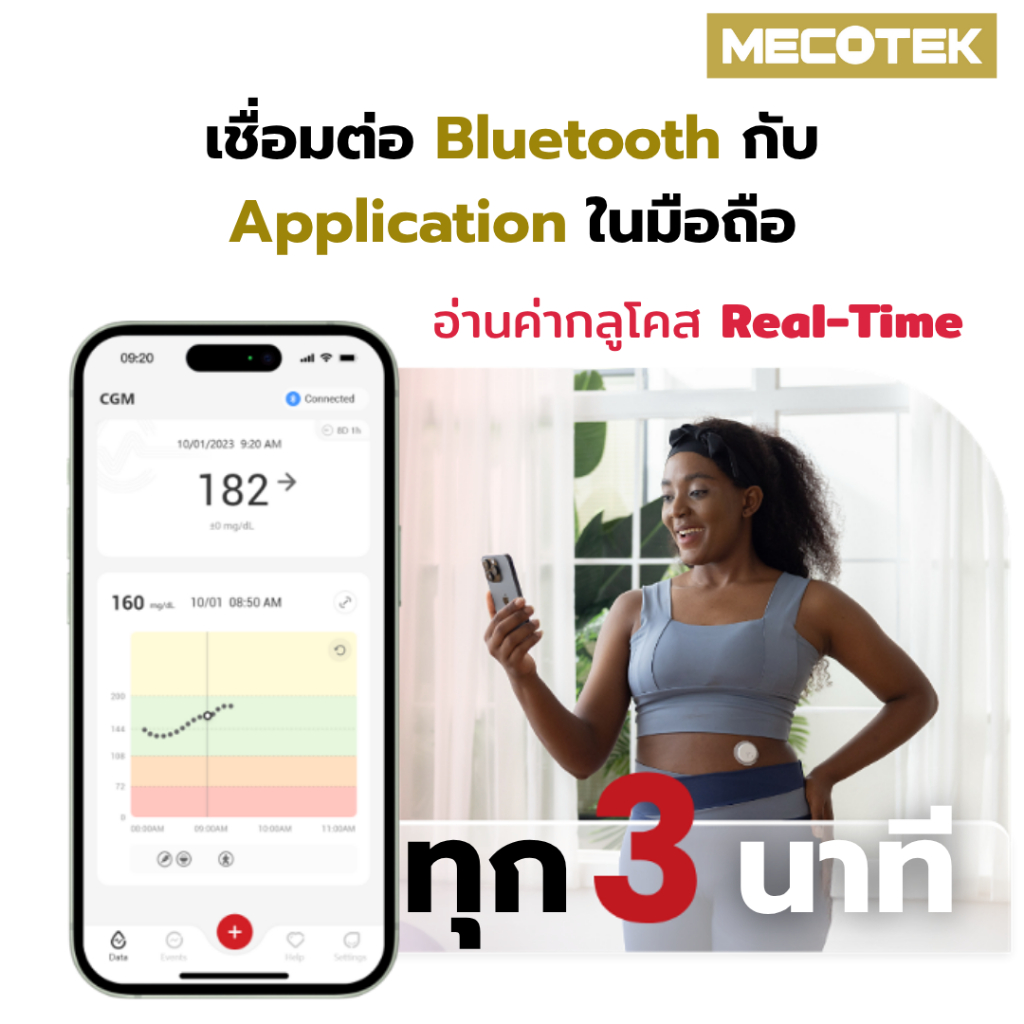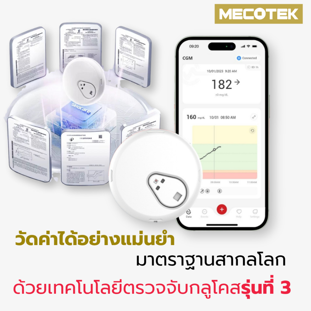 เครื่องวัด Sinocare iCan I3 cgm Continuous น้ำตาลในเลือด ต่อเนื่อง 15วัน ไม่เจาะปลายนิ้ว รู้ผลตรวจทุก 3นาที ตรวจเบาหวาน