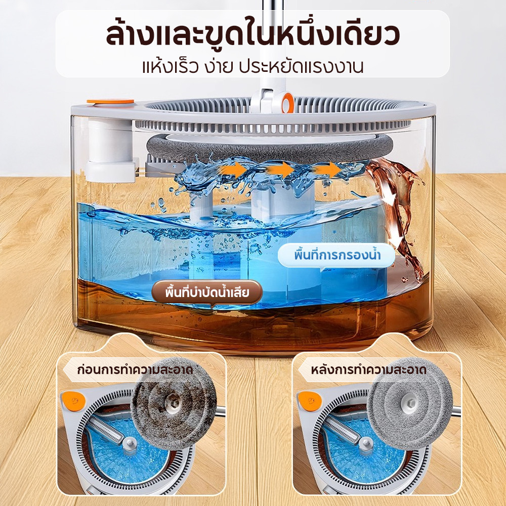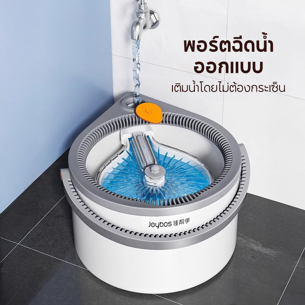 Joybos ไม้ถูพื้นหมุน Spin Mop 360 องศา ถังปั่นแห้งอัตโนมัติ ไมต้องซักมือ ชุดหัวม็อบ 3 ชิ้น ถูพื้นแบบหมุนได้