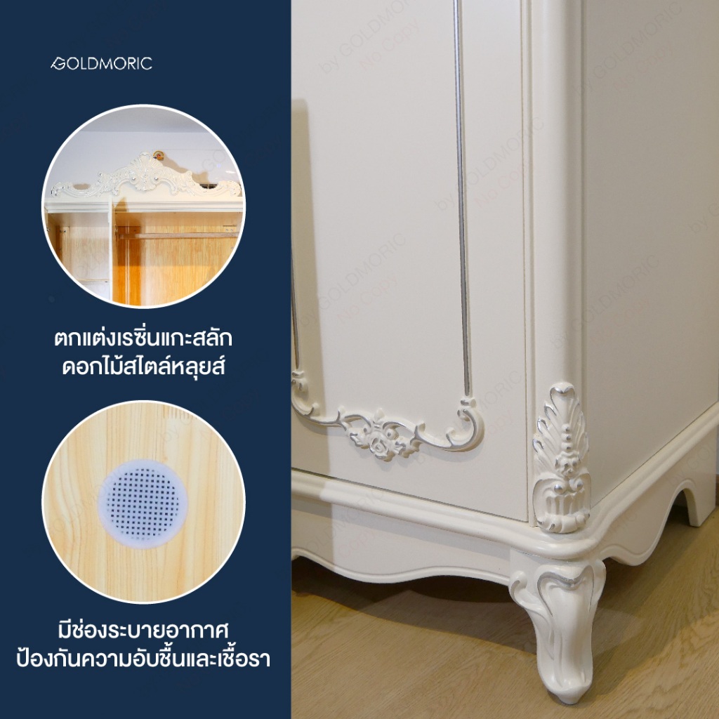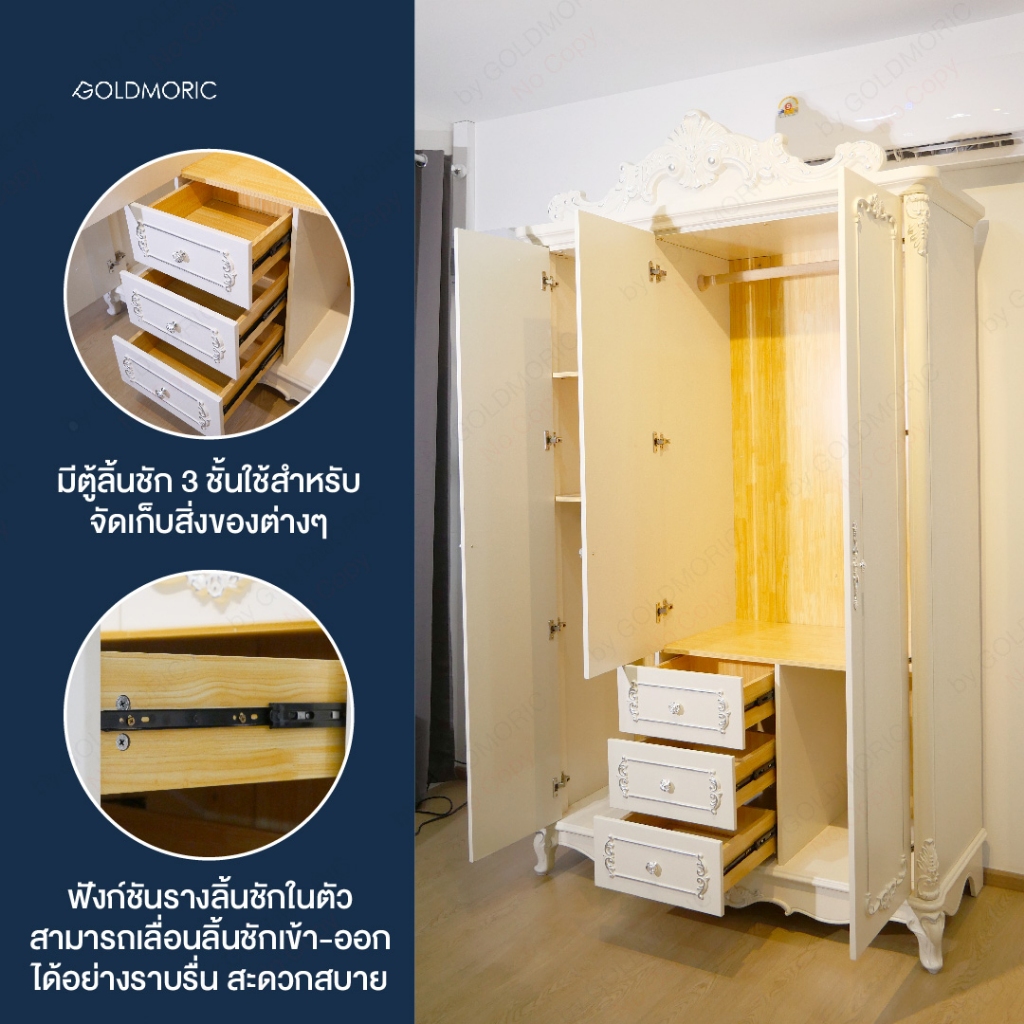 Goldmoric ตู้เสื้อผ้า รุ่น Louis ขนาด 3 บานประตู หรูหราอย่างเรียบง่าย เเข็งเเรง ใช้งานได้จริง 👗✨