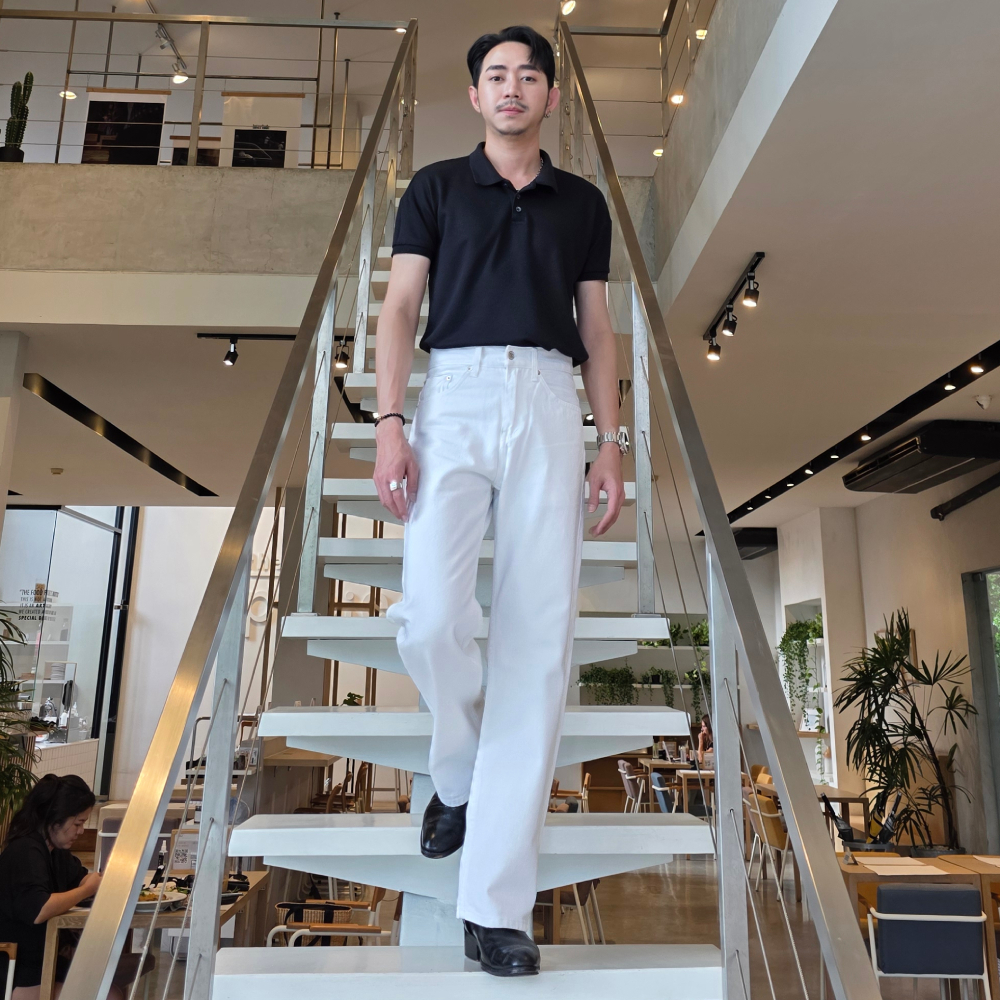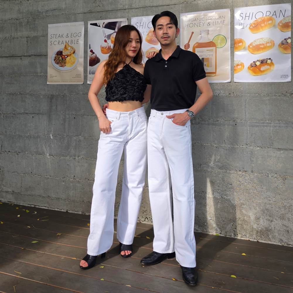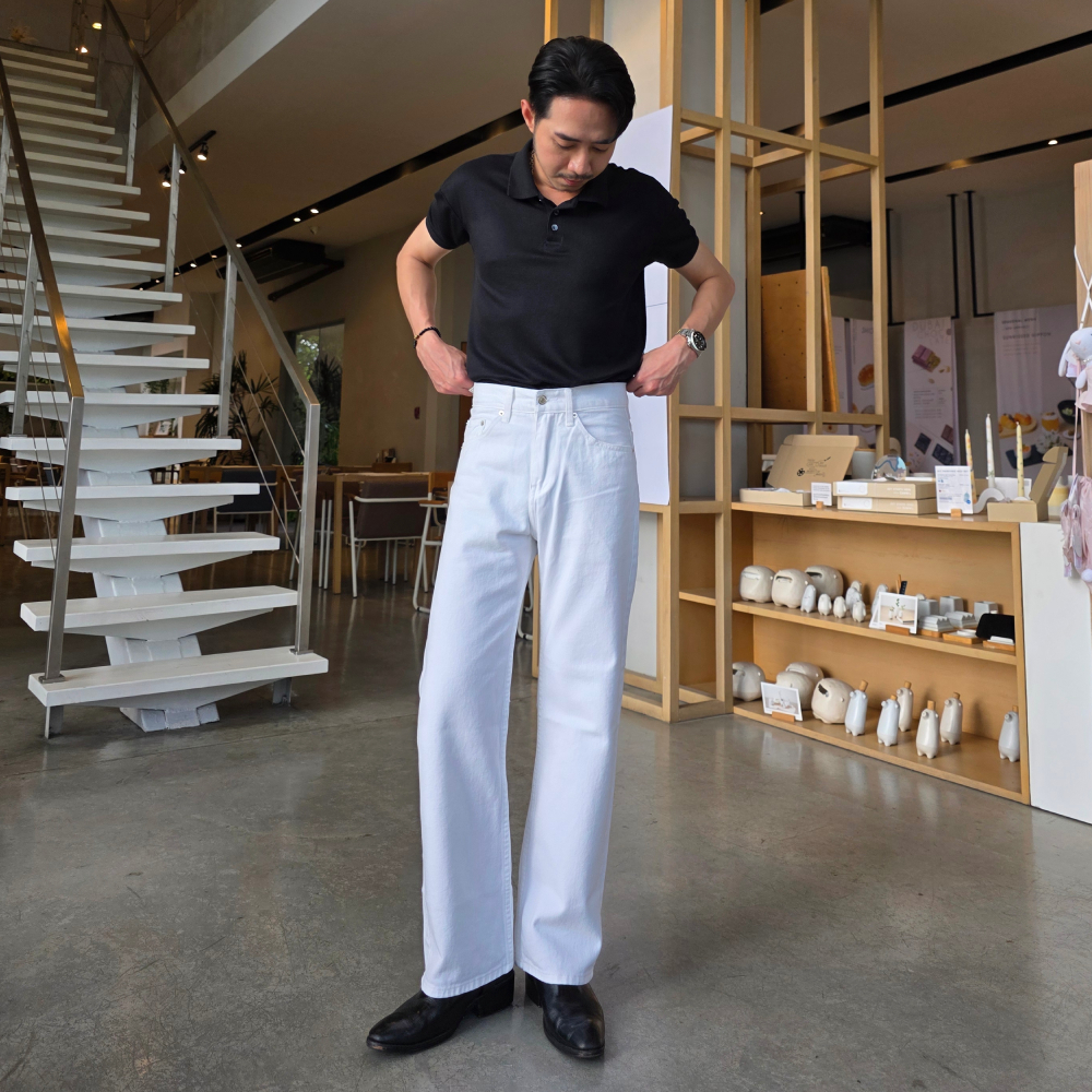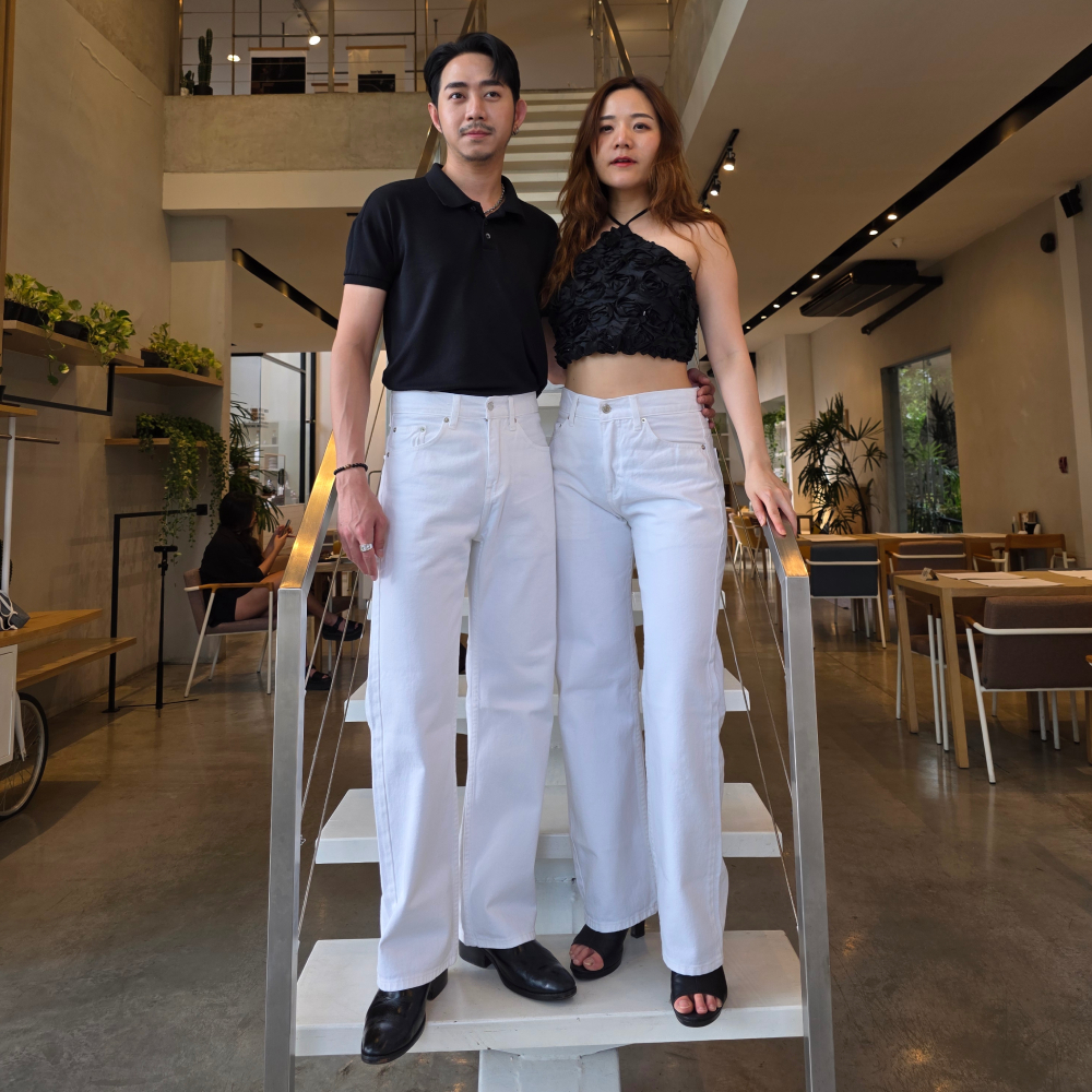 Golden Zebra Jeans กางเกงยีนส์ขากระบอกใหญ่สีขาว ยีนส์Unisex เอวสูง
