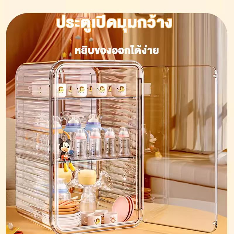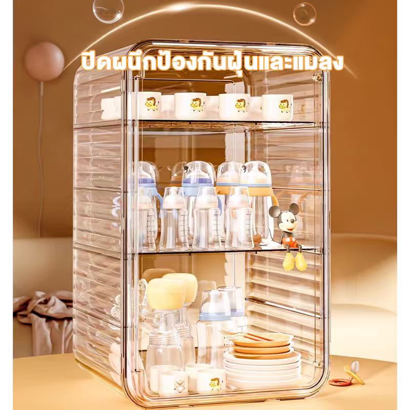【COD】กล่องเก็บของใช้เด็กพร้อมฝาปิดป้องกันฝุ่น ผลิตจากวัสดุอะคริลิก ความจุขนาดใหญ่ สามารถเก็บขวดนม ชาม อุปกรณ์อาหาร ฯลฯ