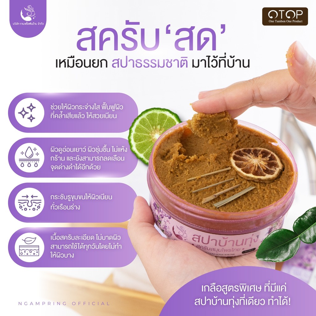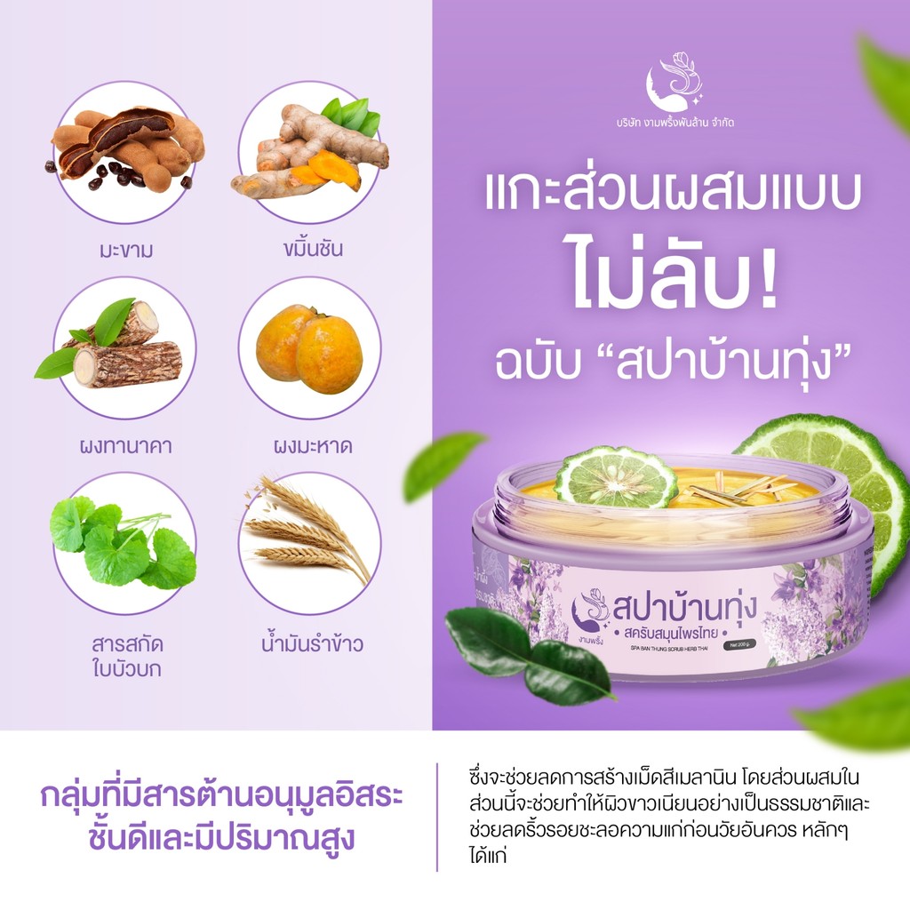 (เซตคู่สปาผิว) สครับตัว 1 + น้ำนมบำรุง 1 แบรนด์งามพริ้ง สครับสปาบ้านทุ่ง ขัดผิวขาวกระจ่างใส ลดรอยแตกลาย