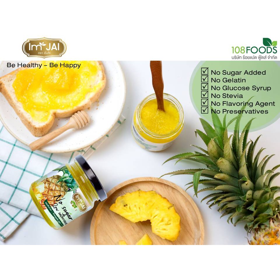 สับปะรด สเปรด 200g. ไม่ใส่น้ำตาล Pineapple Spread No Sugar แยมอิ่มใจ (Im JAI) สายคลีน Vegan มี อย. GHPs Codex/HACCP
