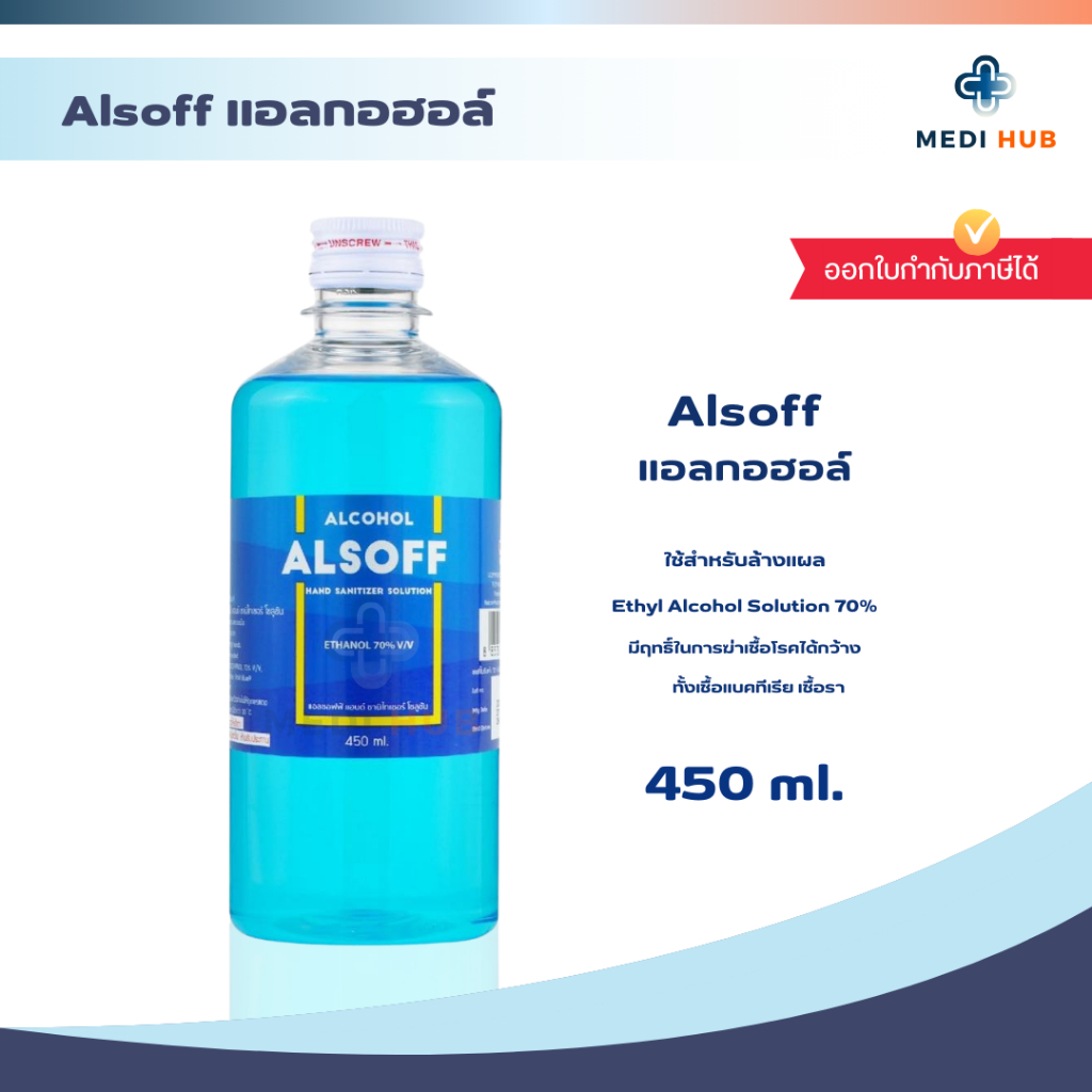 Alsoff แอลกอฮอล์ (จำนวน 1 ขวด) Ethyl Alcohol 70% ขนาด 450 ml. แอลซอฟฟ์