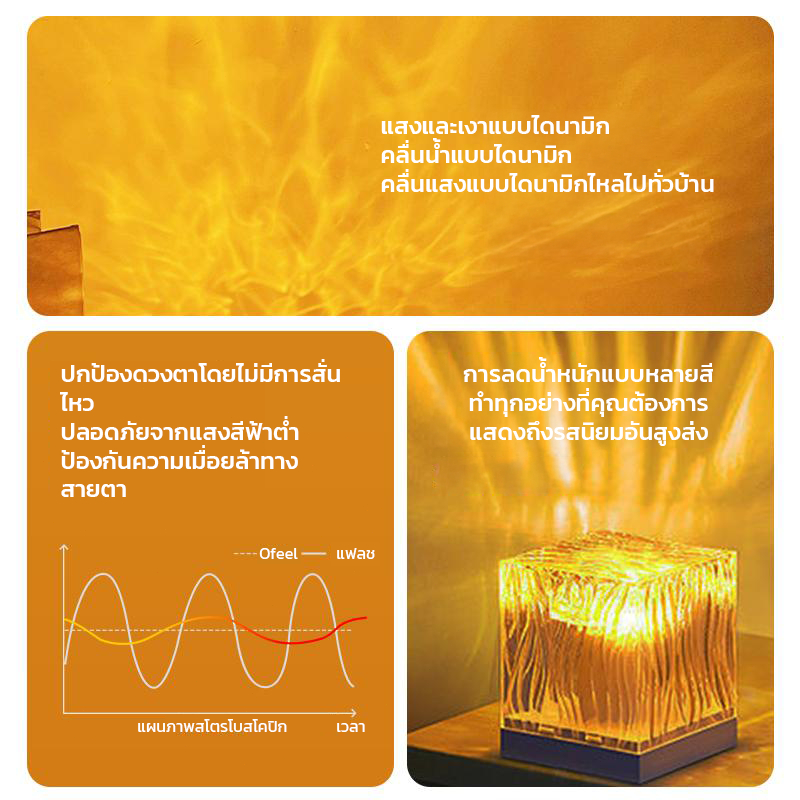 Ofeel ไฟห้อง ไฟแต่งห้อง โคมไฟตั้งโต๊ะ โคมไฟหัวเตียง หลอดไฟ led โแสงระลอกน้ำ บรรยากาศโรแมนติกแสงไฟ