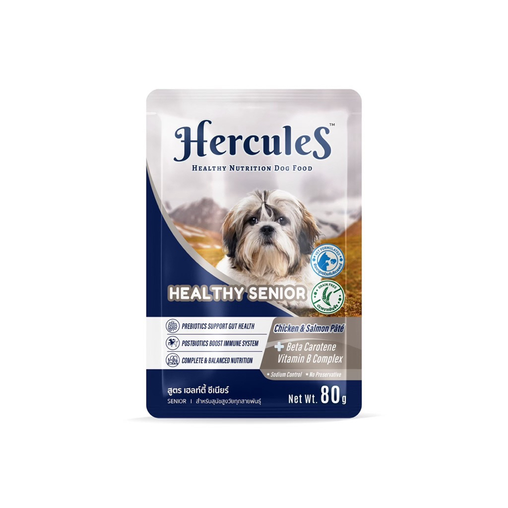 Hercules อาหารเปียก โปรตีนสูง สำหรับลูกสุนัข และสุนัขโตทุกสายพันธุ์ ขนาด 80 กรัม