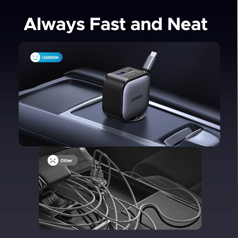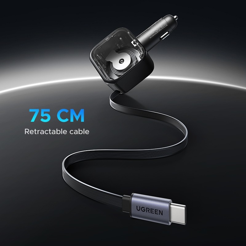 UGREEN ที่ชาร์จในรถยนต์ Car Charger 60-145W Fast Charging พร้อมสาย USB-C เก็บได้ในตัวรุ่น EC602