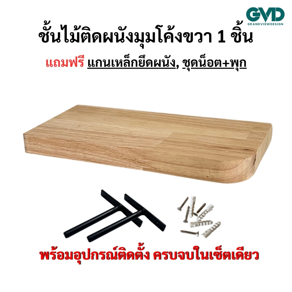 PR30-1 (ขวา)ชั้นวางมุมโค้งขวา ติดผนังพ่นสี ผลิตจากไม้พาราประสานและไม้ MDF พ่นสี *แถมฟรีแกนเหล็กชุดน็อตพุก