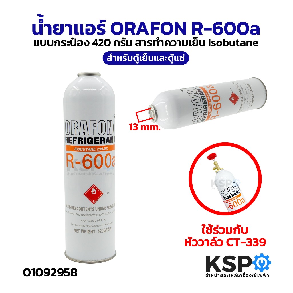 น้ำยาแอร์ ORAFON R-22, R-32, R-290, R-600a, R134a แบบกระป๋อง ขนาด 380g / 500g / 420g / 1000g สารทำความเย็น อะไหล่แอร์