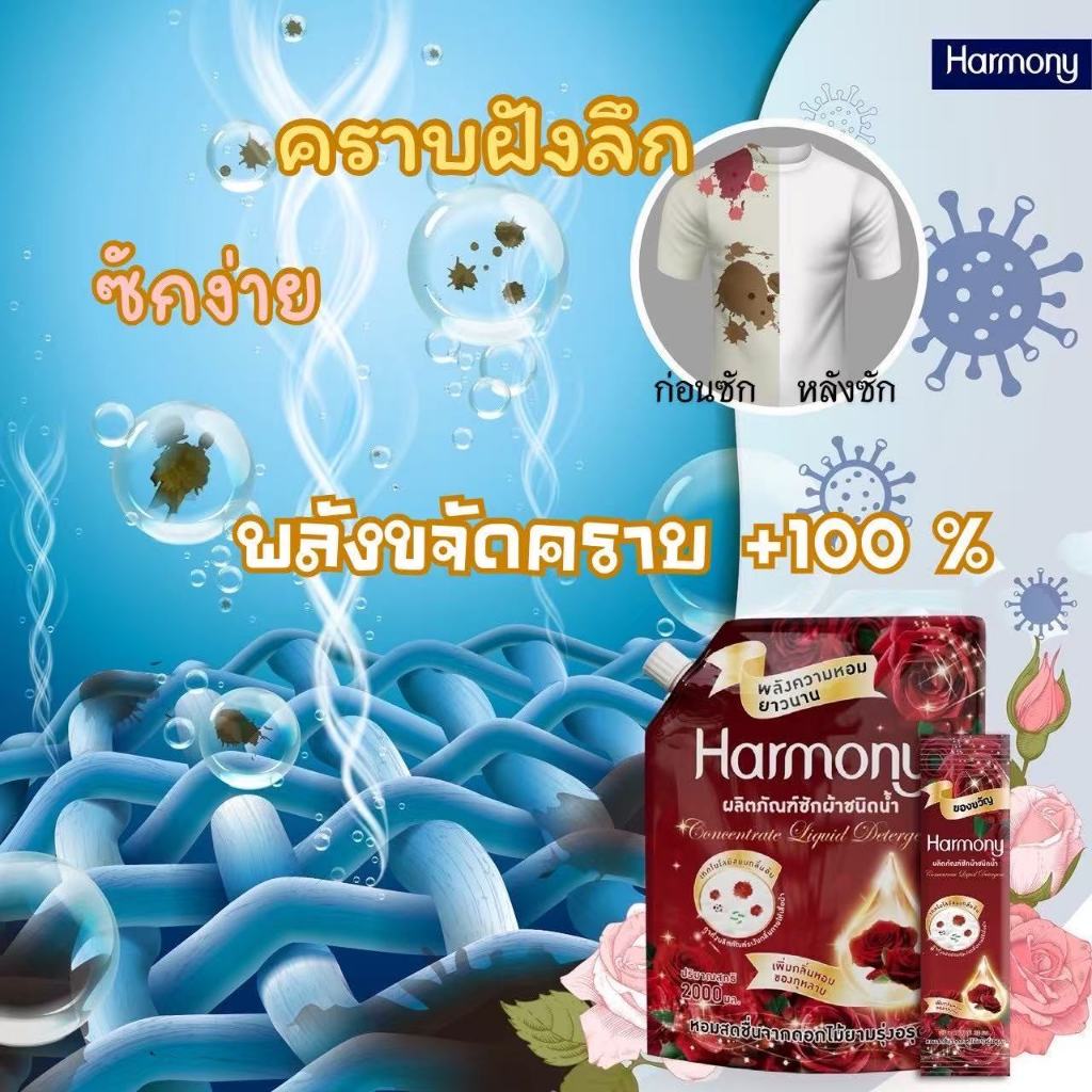 【harmony】แพ็กสุดคุ้ม น้ำยาซักผ้าผสมน้ำยาปรับผ้านุ่ม กลิ่นกุหลาบ 2000 มล. สูตรอ่อนโยนใช้ได้กับเสื้อผ้าเด็ก ขจัดคราบได้ล้ำ