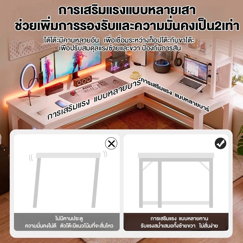 I&D โต๊ะทำงาน โต๊ะคอม รูปตัว L 140/120CM สามารถจับคู่กับชั้นเก็บของได้ ดูสวยมาก สไตล์โมเดิร์น ดีไซน์โครงเหล็กหนา