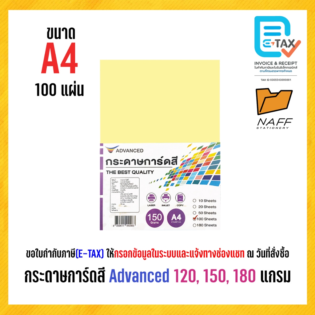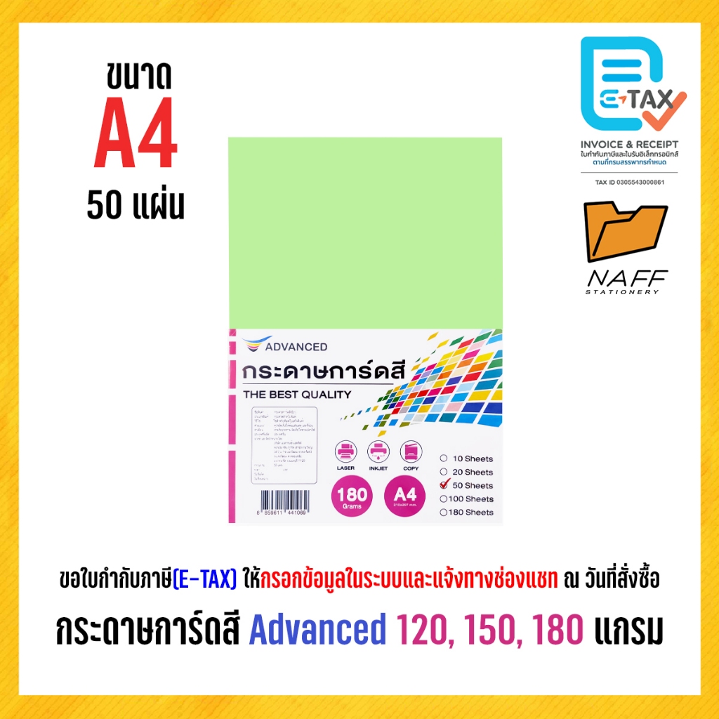 กระดาษ กระดาษสี การ์ดสี ADVANCED ขนาด A4 หนา 120, 150, 180 แกรม (50,100 แผ่น/แพ็ค)