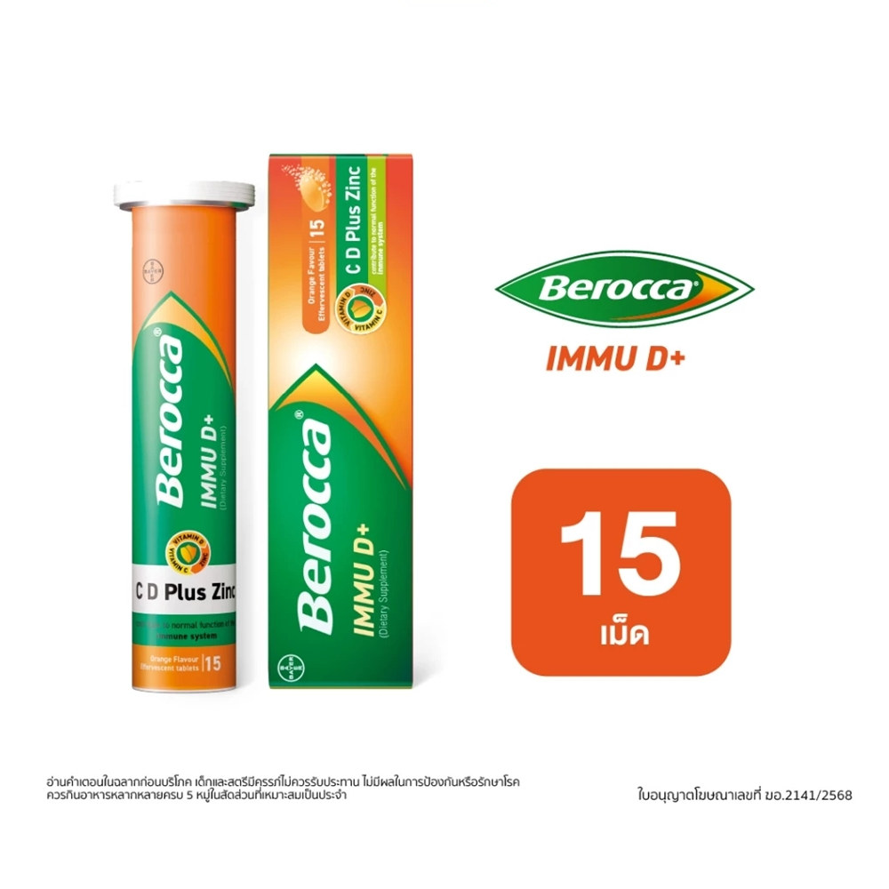 Berocca IMMU D+ (Dietary Supplement) 15 Tablets/Tube บีรอคคา อิมมู ดี พลัส (ผลิตภัณฑ์เสริมอาหาร) แบบเม็ดฟู่ละลายน้ำ