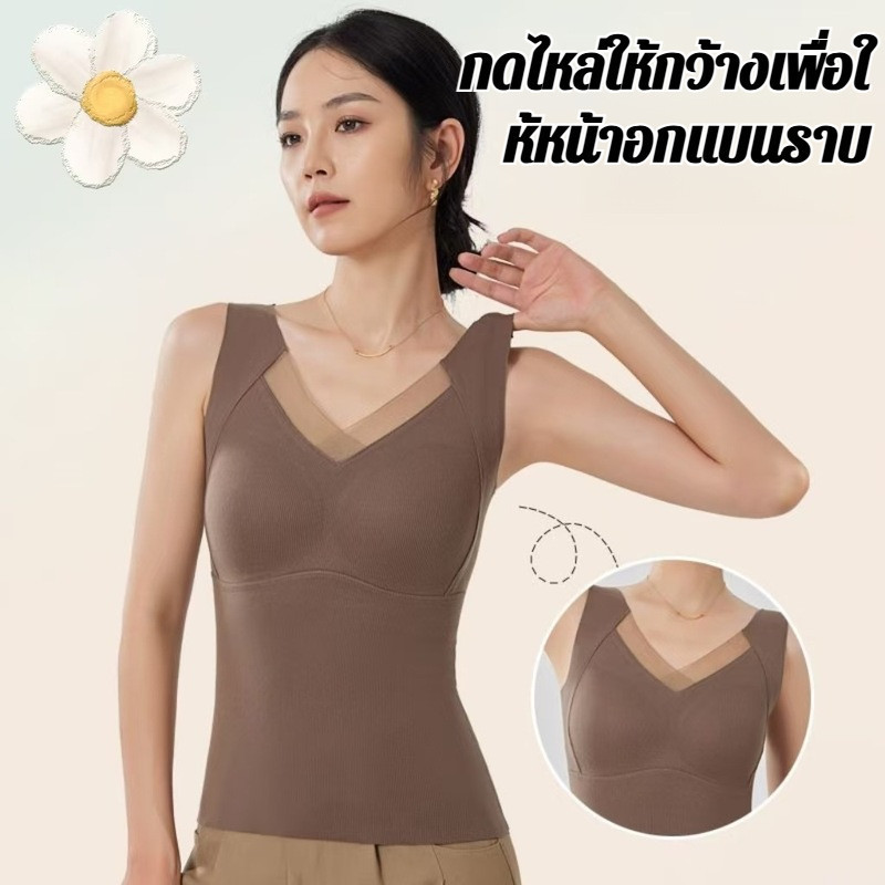 『Brelira』เสื้อกั๊กกันหนาวผู้หญิง นุ่ม อ่อนโยนต่อผิว ระบายความชื้น ระบายอากาศได้ดี สำหรับผู้หญิง ชั้นใน คอวี เสื้อกั๊กแคชเมียร์