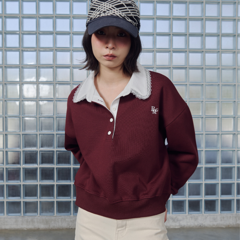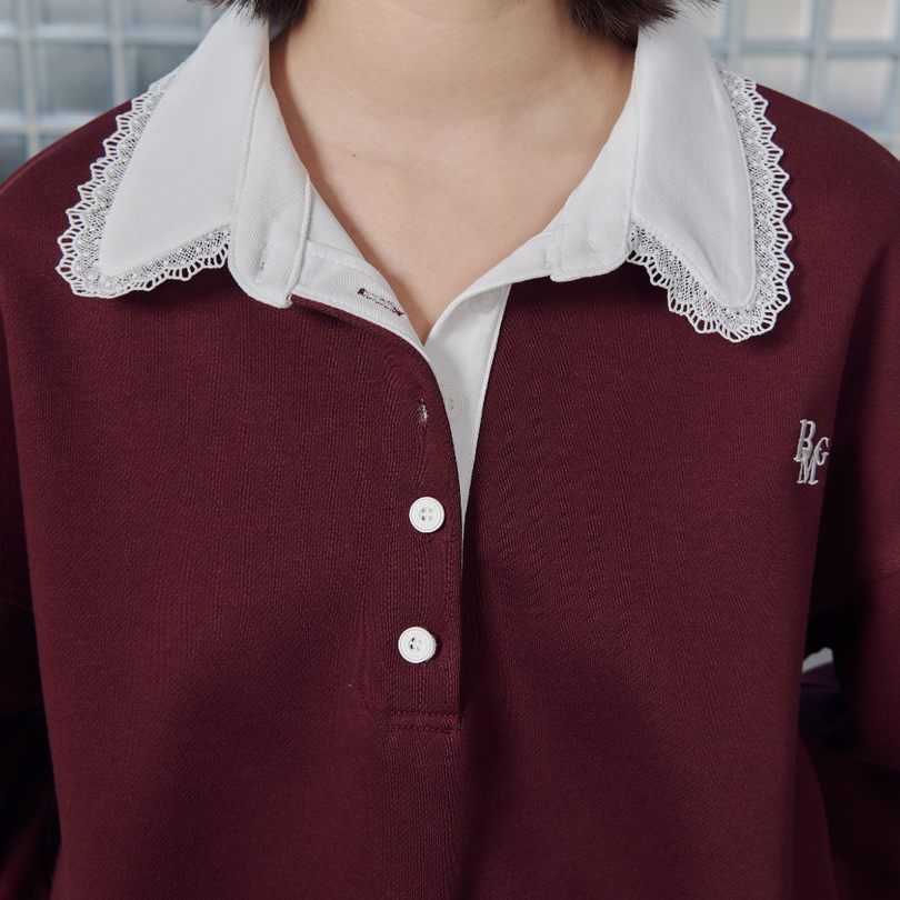 Bemingtop1052(S-2XL)-BMG Lace Collar Sweater — เสื้อสเวตเตอร์โอเวอร์ไซส์ คอบัวขอบลูกไม้โลโก้ปัก BMG