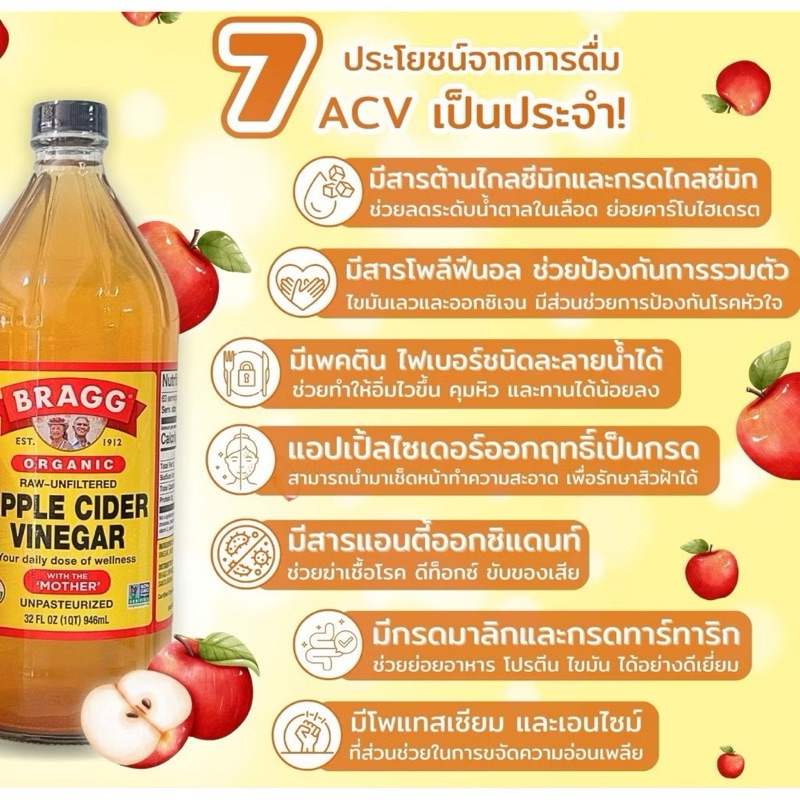 *ขายดี*ของแท้ ล้าน%💥แอปเปิ้ลไซเดอร์ Bragg Apple Cider Vinegar นำเข้าจากอเมริกา No.AP001 AP002