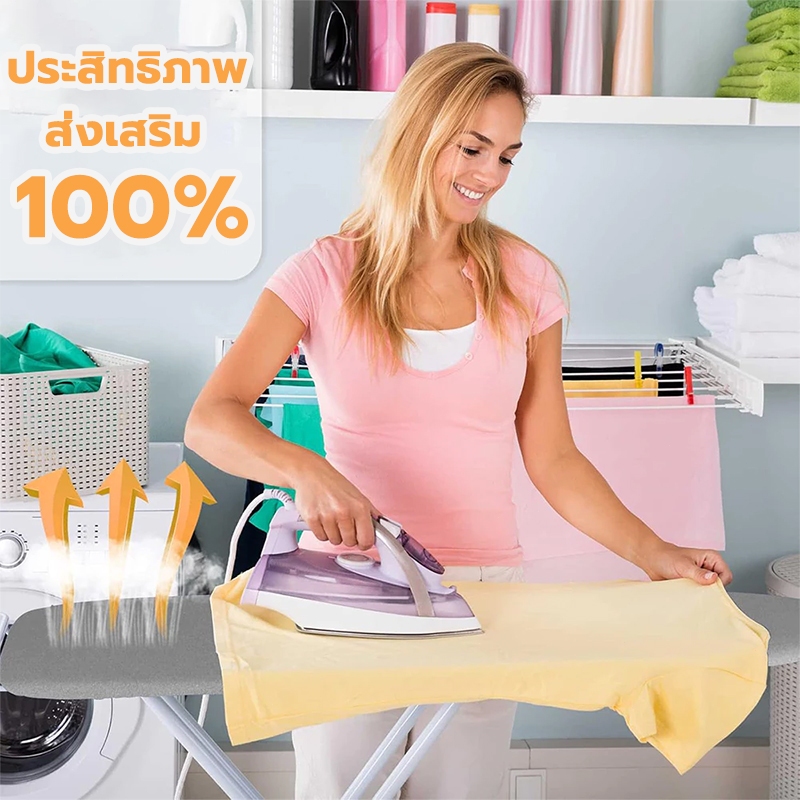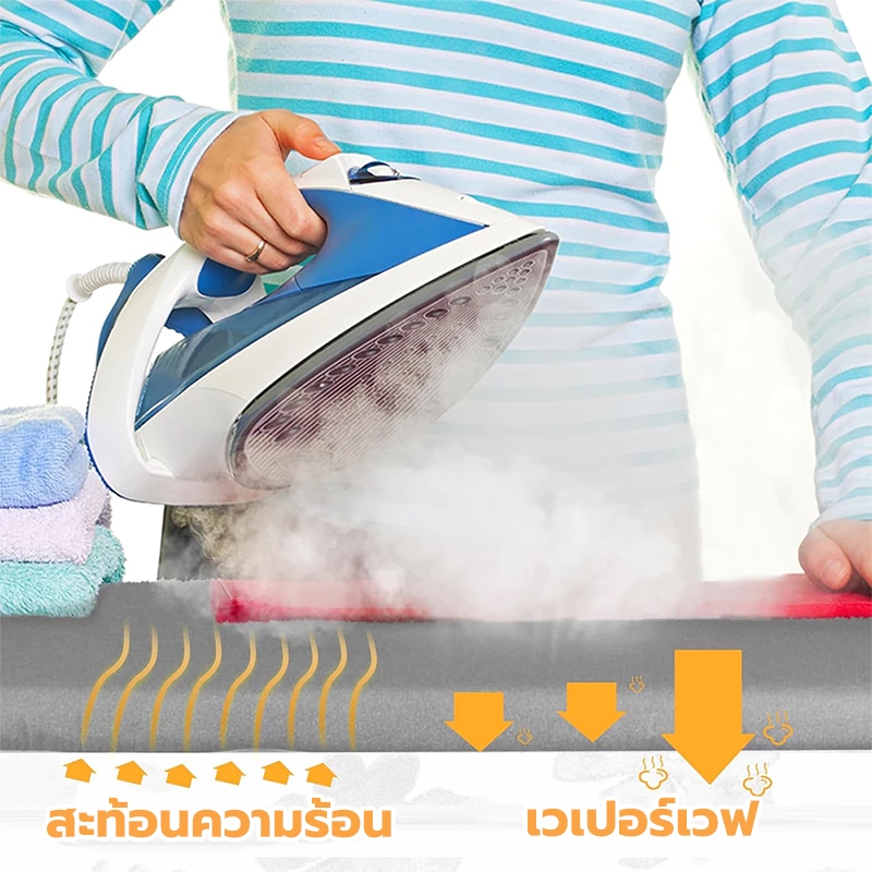 GREENIKA ผ้าปูรองรีดสะท้อนความร้อน ทำจากผ้าฝ้าย 100% ฟองน้ำหนา มีสายรัดปรับยืดหยุ่นได้ สำหรับใช้กับแผ่นรองรีด แบบปลอกคลุม มีหลายขนาดให้เลือก