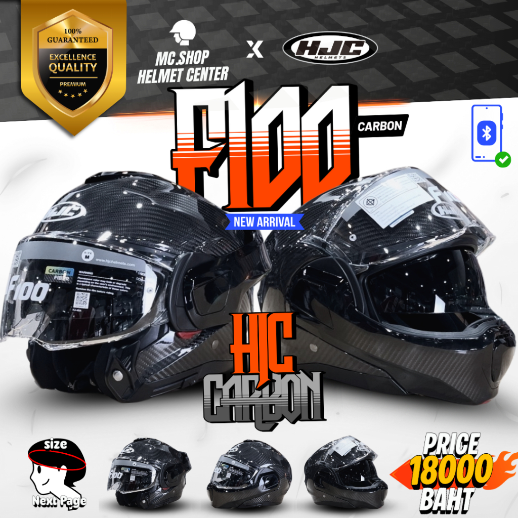 🔥หมวกตัวจบ🔥HJC F100 CARBON MODULAR หมวก ยกคาง(Flip back) แถม Pinlock เนื้อคาร์บอนที่แข็งแรง(น้ำหนักเบา)