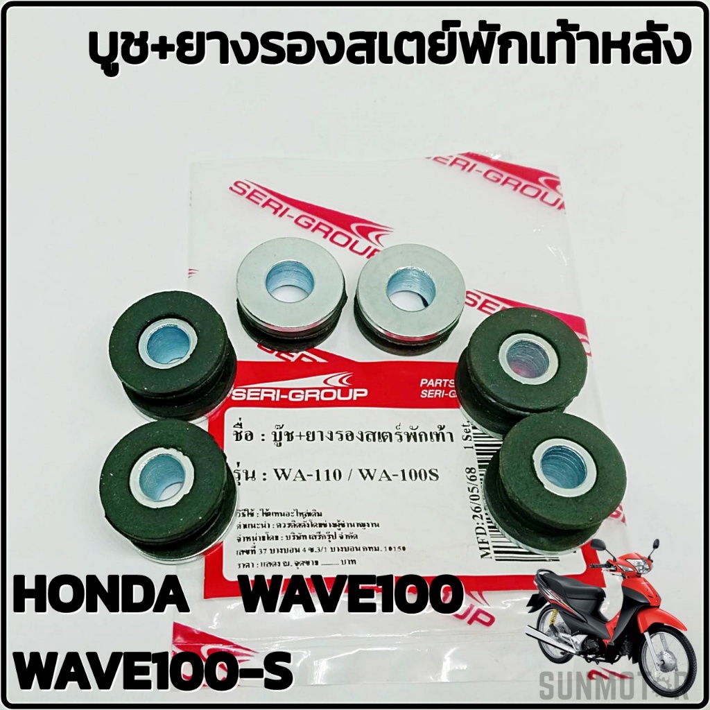 บูช + ยางรอง สเตย์พักเท้าหลัง HONDA WAVE100 / WAVE100-S / WAVE110 (คาบู) รุ่นเก่า (6 ตัว/ ชุด) สินค้าเกรดเอ ตรงรุ่น