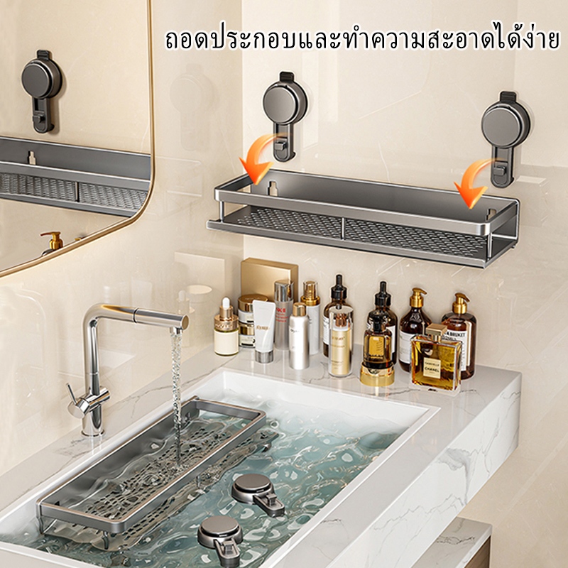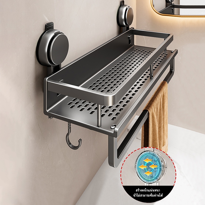 ชั้นวางถ้วยดูดในห้องน้ําพร้อมก้านตะขอการดูดซับที่ดีและความจุรับน้ําหนักที่แข็งแกร่ง