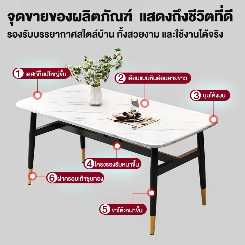 โต๊ะกินข้าว 140/120/100CM ใช้ในร้านกาแฟและร้านกินข้าว สามารถนั่งได้ 8 คนพร้อมเหล็กเสริม กันเปื้อน เช็ดทำความสะอาดง่าย