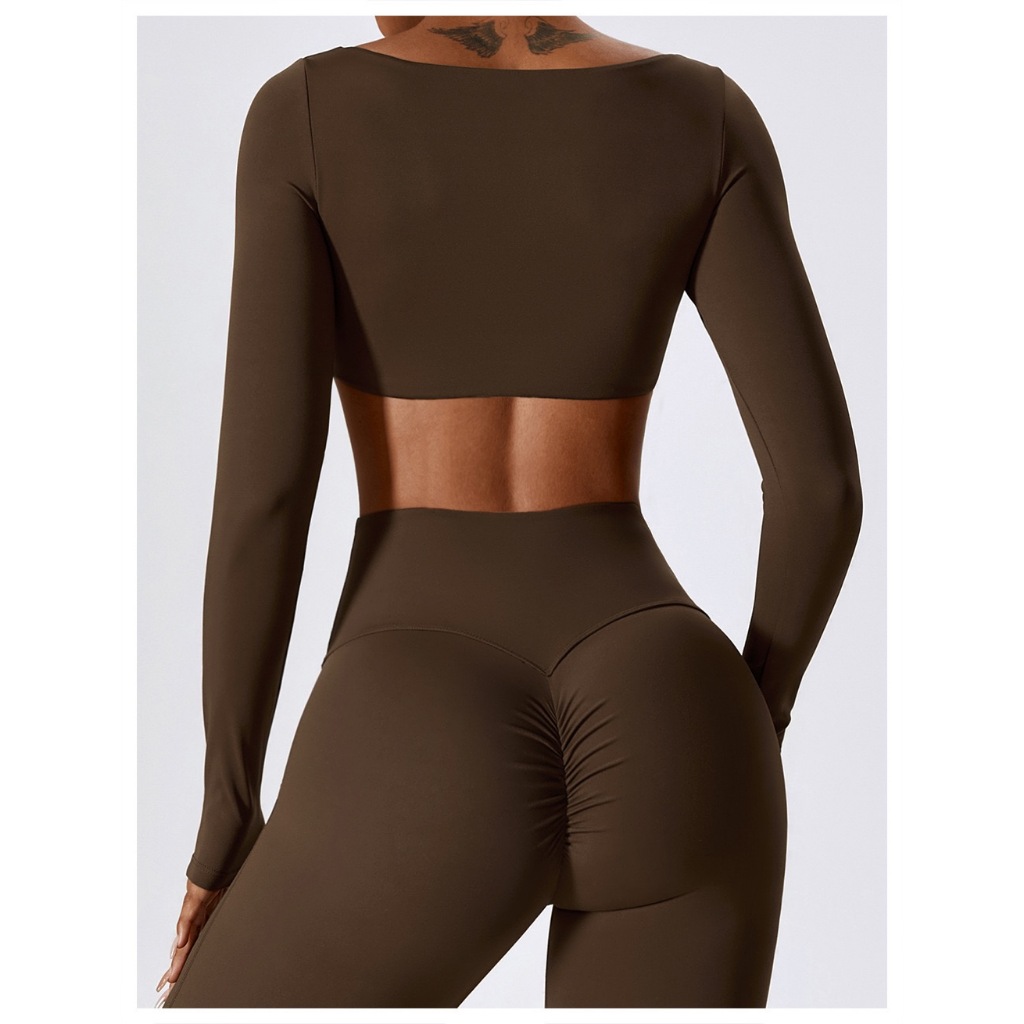 Hoppe Fumeng แขนยาวผู้หญิงเบาะวิ่งแห้งเร็วท็อปส์ออกกําลังกายกีฬา