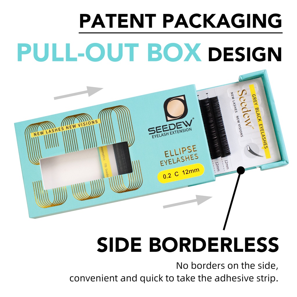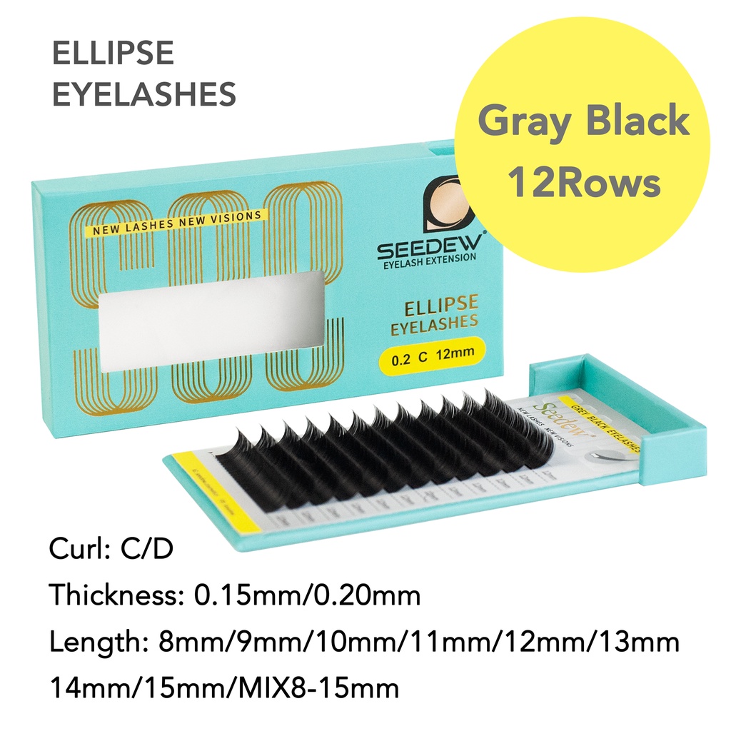 SEEDEW Flat Ellipse Eyelash Extensions 0.15mm 0.2mm Matte Grey Black Split Tips Shaped Soft Natural